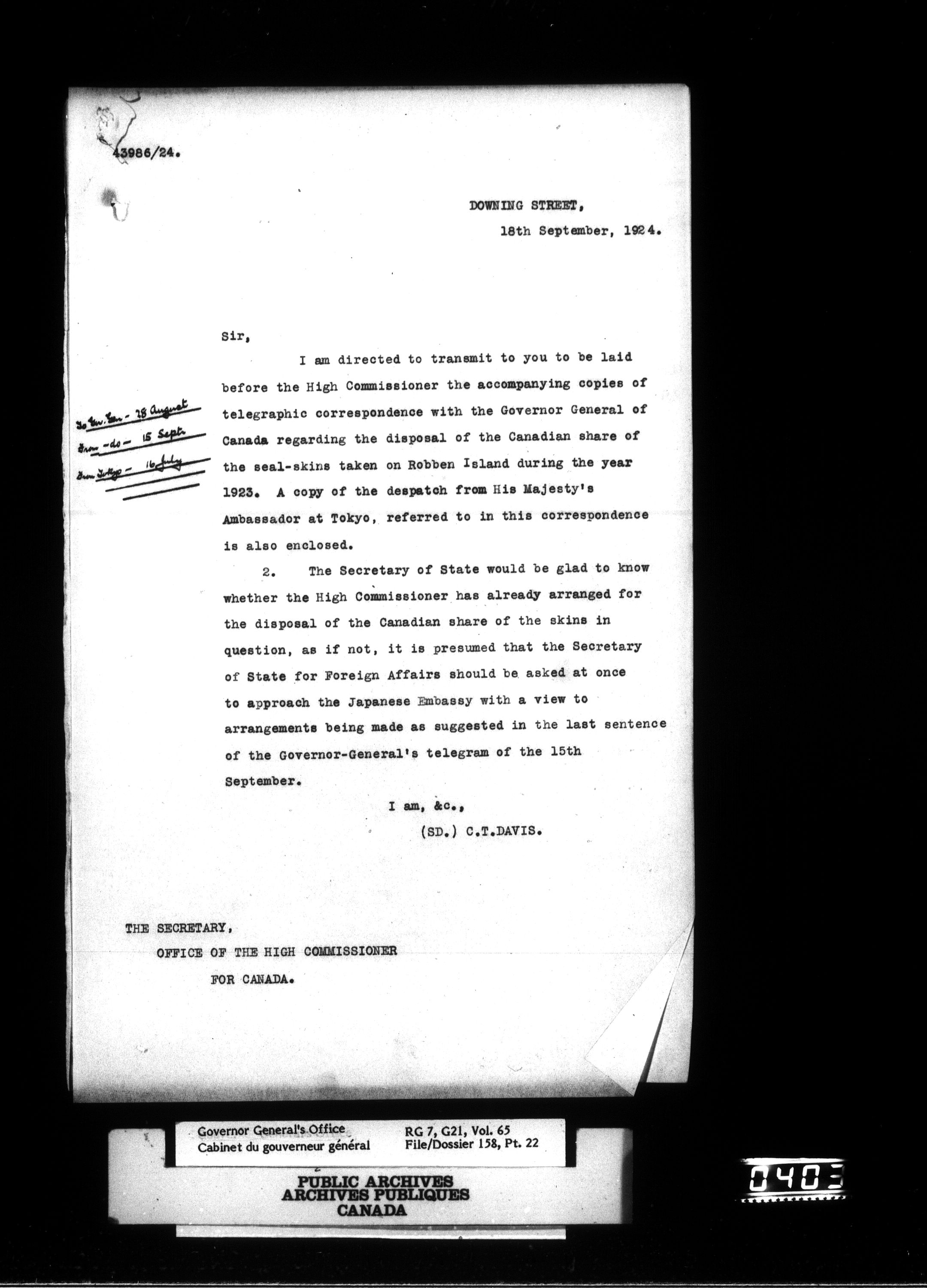 [Governor General] numbered files ; [Gouverneur-générale] dossiers numérotés - T-822