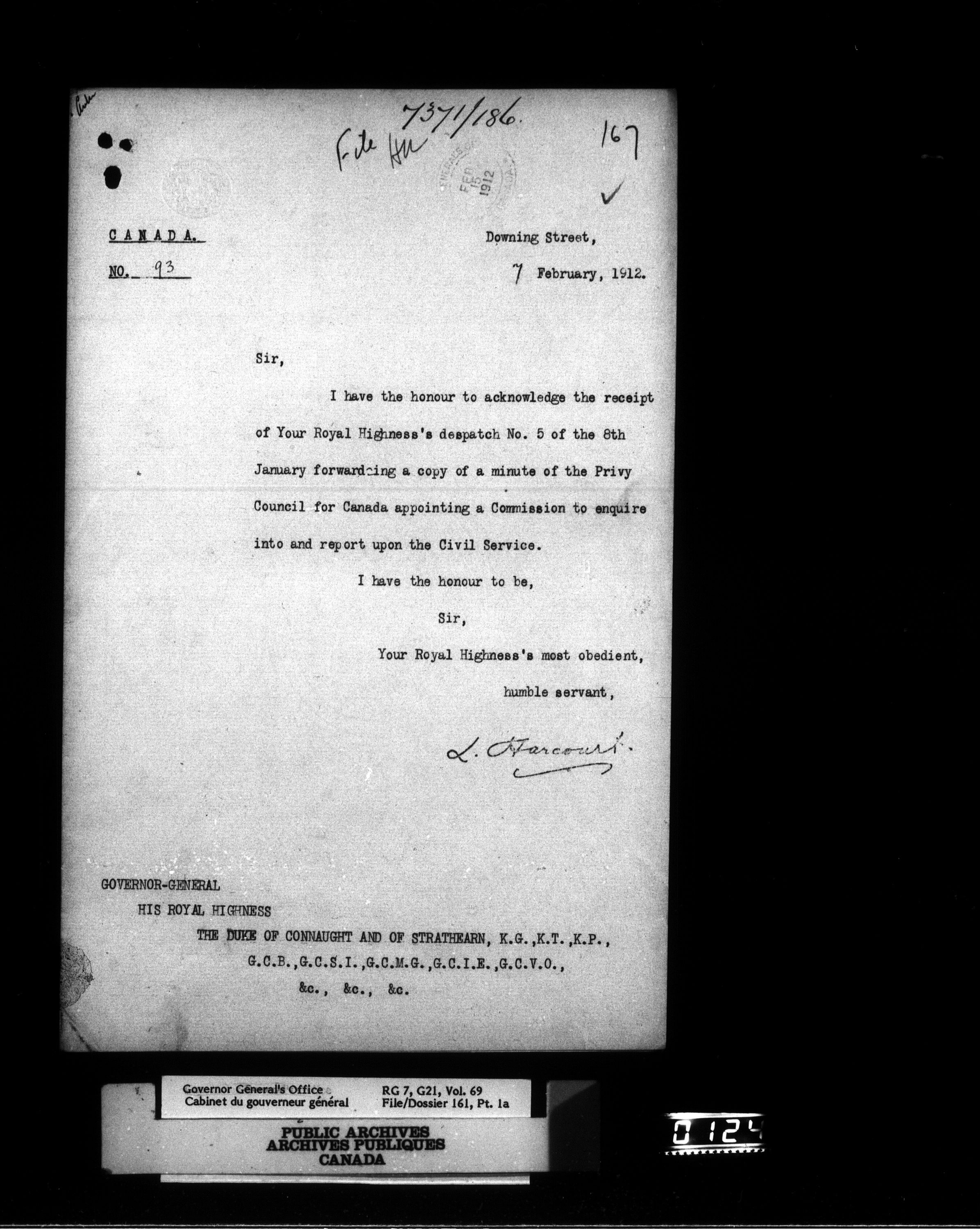 [Governor General] numbered files : T-824