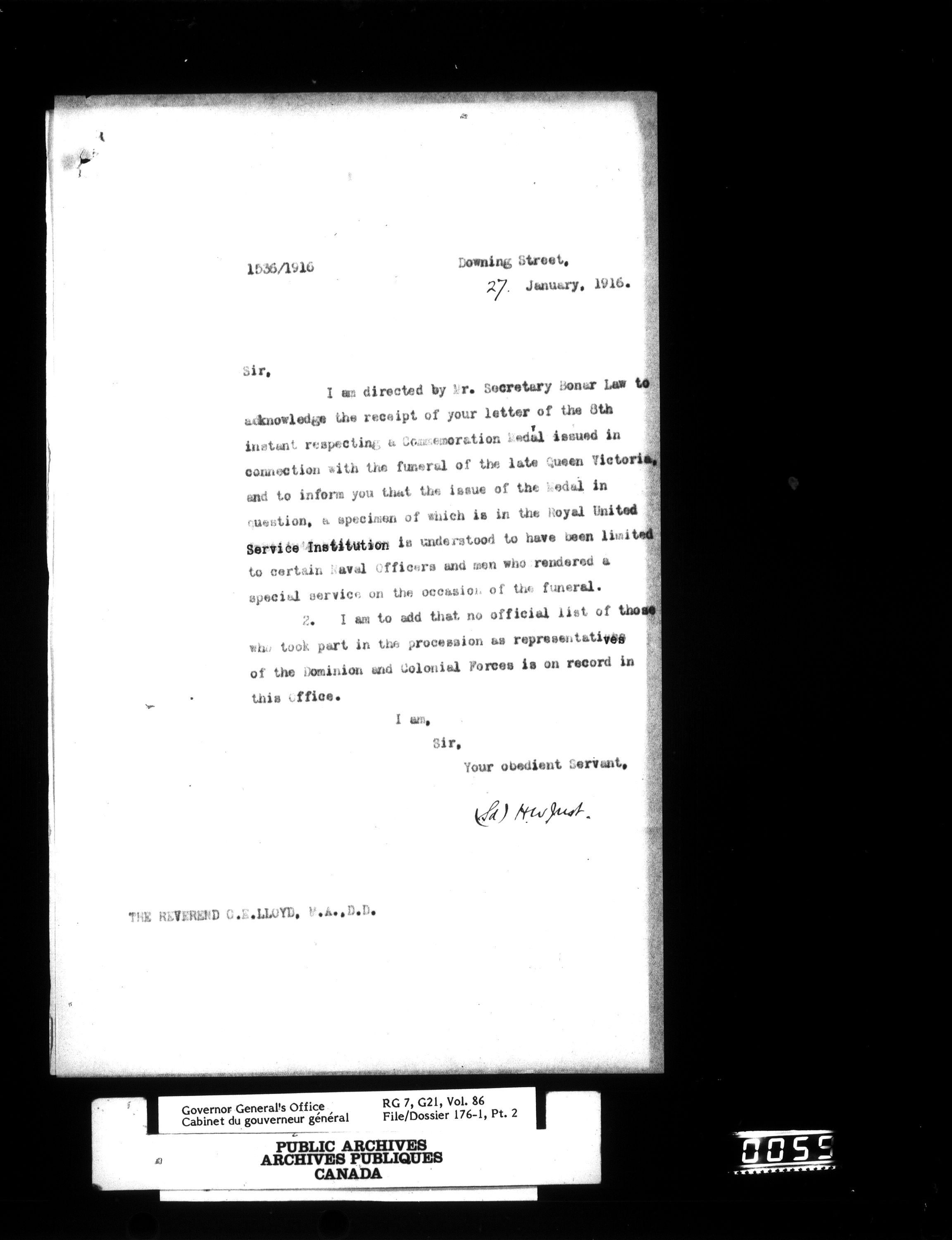 [Governor General] numbered files : T-830