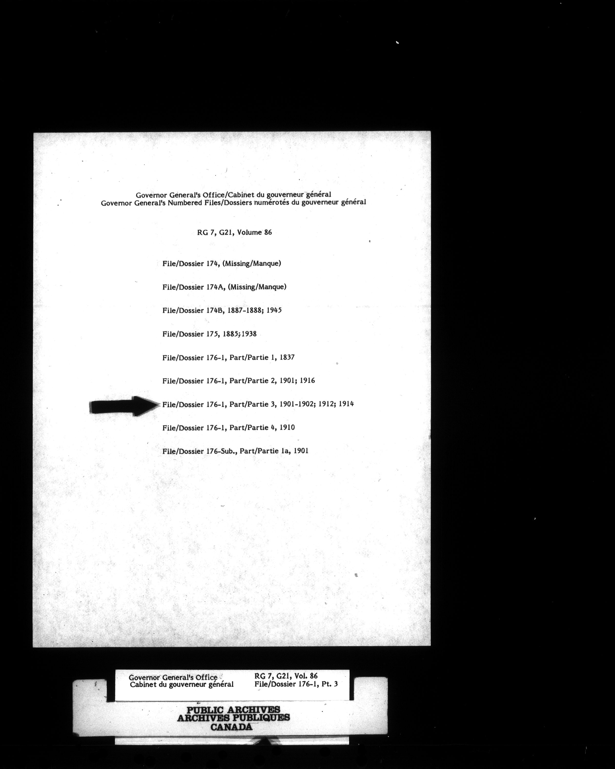 Vol. 86, file 176-1, pt. 2-89, file 181, pt. 2