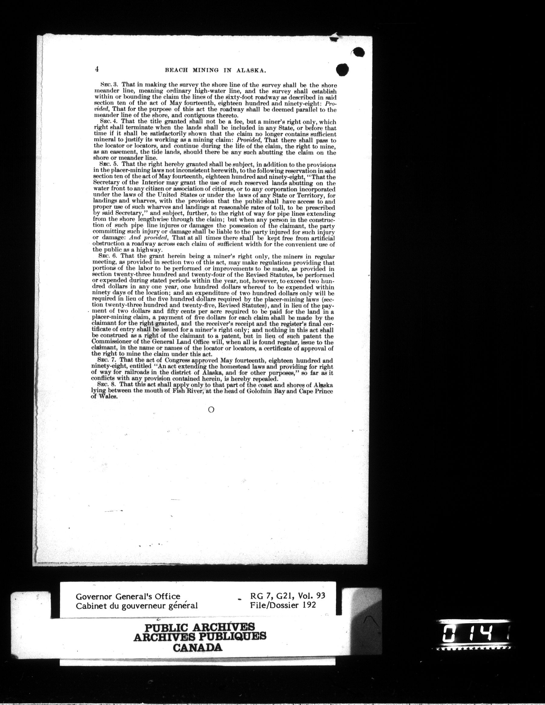 [Governor General] numbered files : T-831