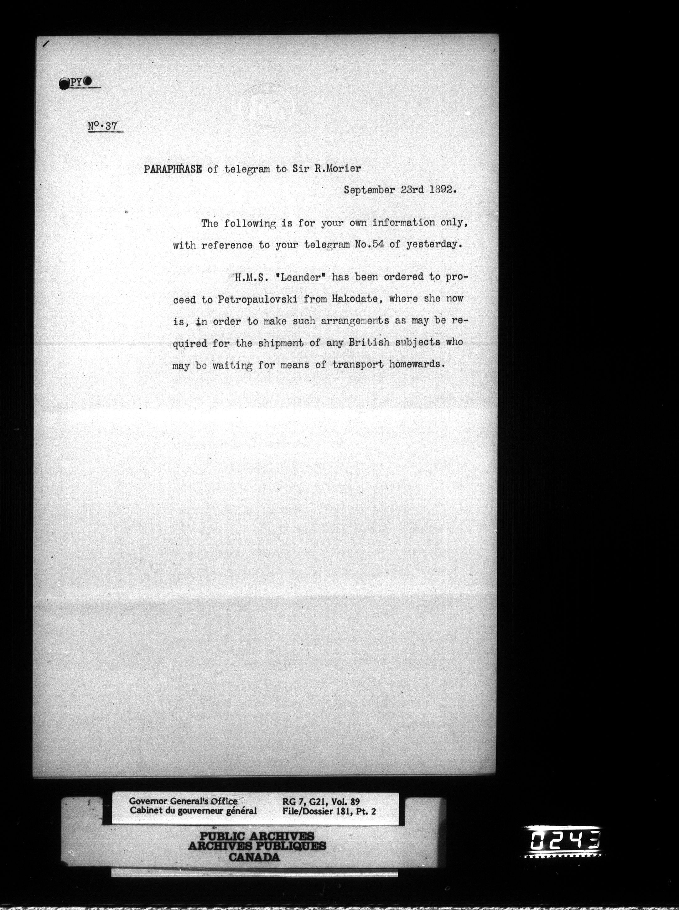 [Governor General] numbered files : T-831