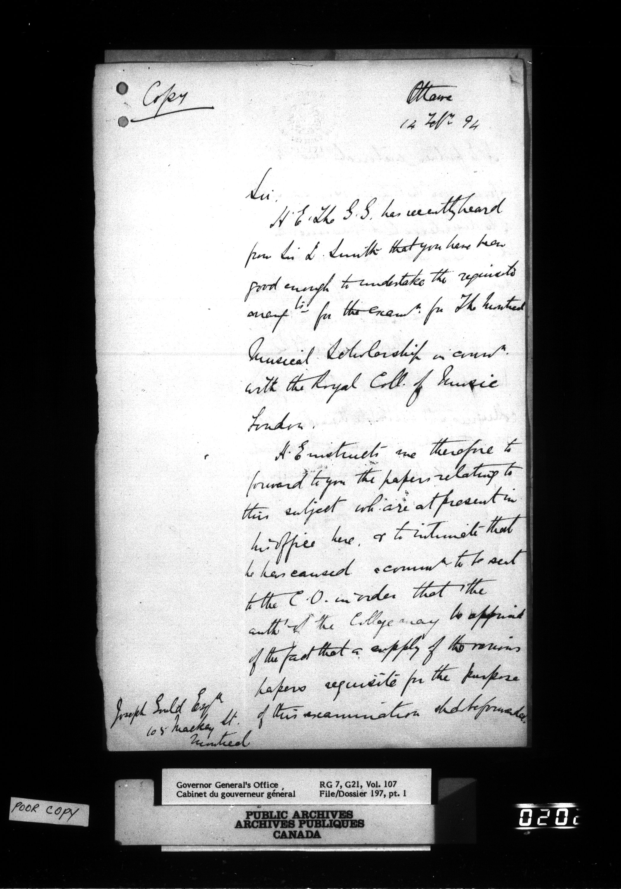 Royal College of Music (Grande-Bretagne). Montreal Scholarship