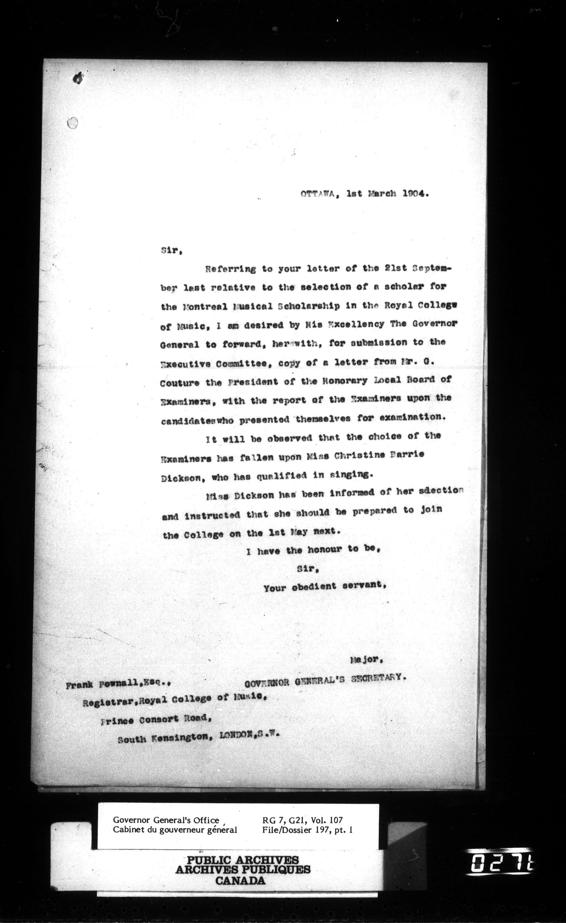Royal College of Music (Great Britain). Montreal Scholarship