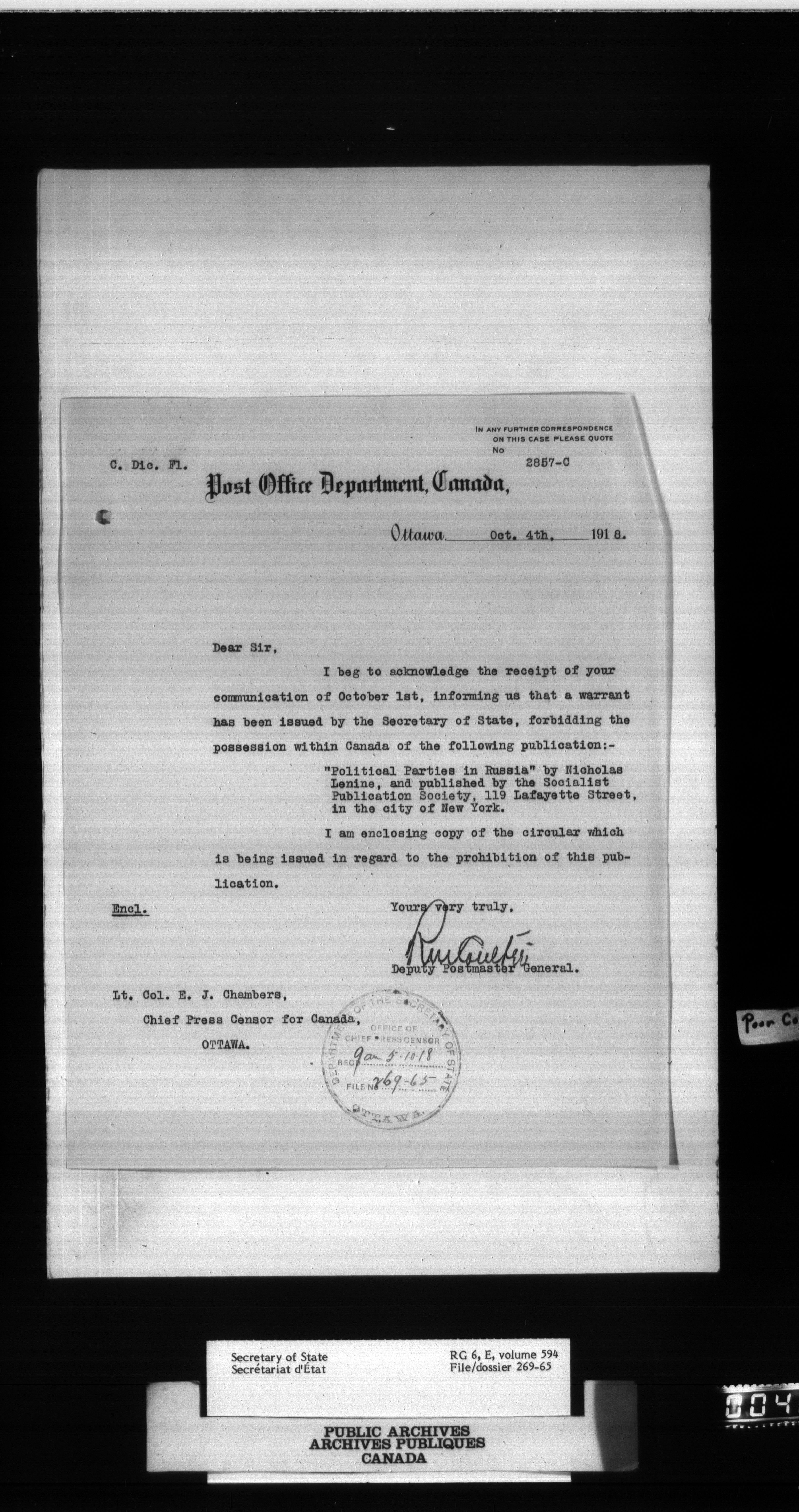 Secretary of State : Chief Press Censor, 1915-1920 - 84