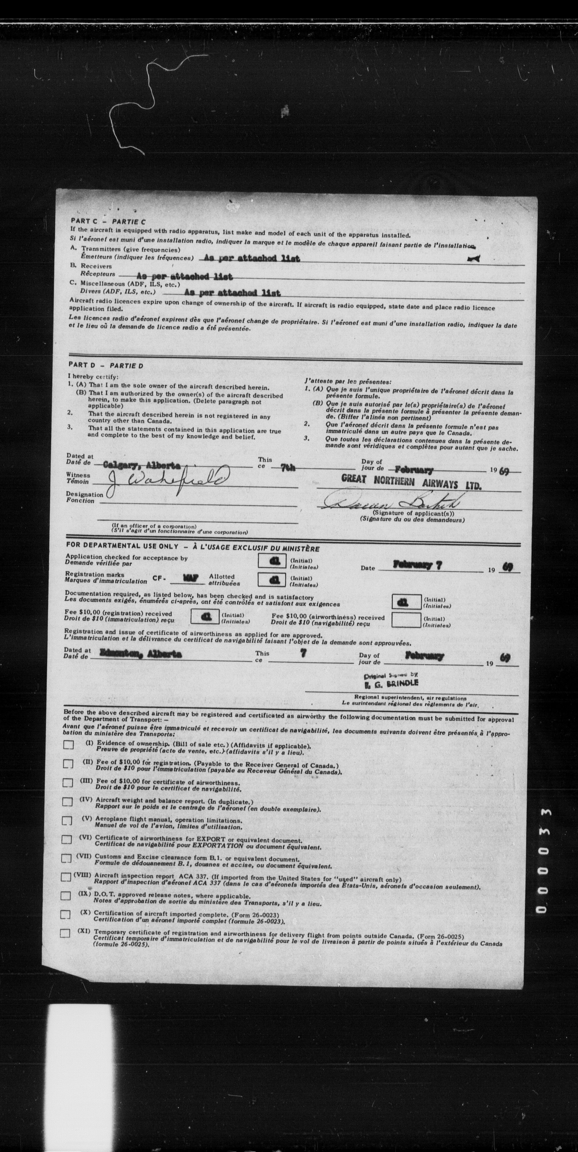 Department of Transport : Civil aircraft registration, inspection and operation files, block 5008, 1920-1986