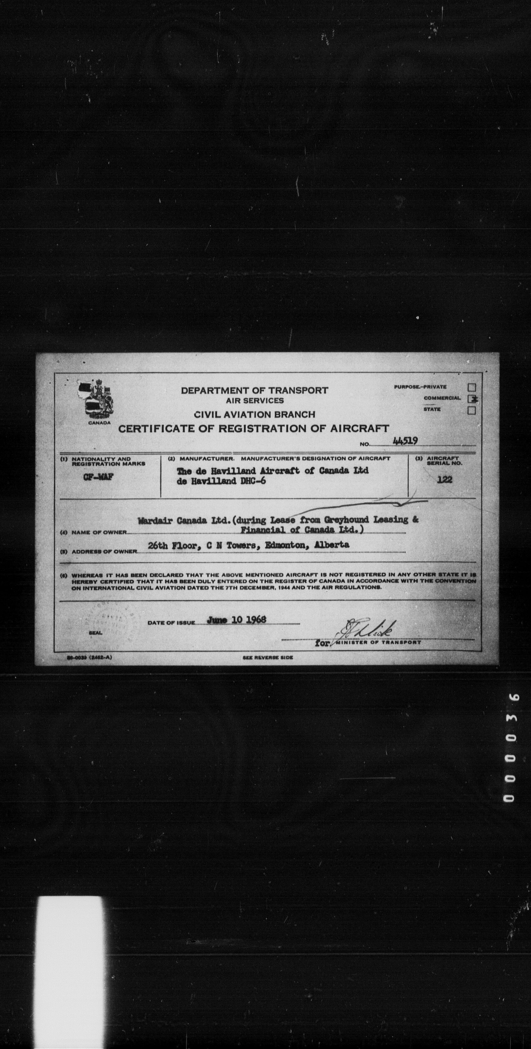 Department of Transport : Civil aircraft registration, inspection and operation files, block 5008, 1920-1986