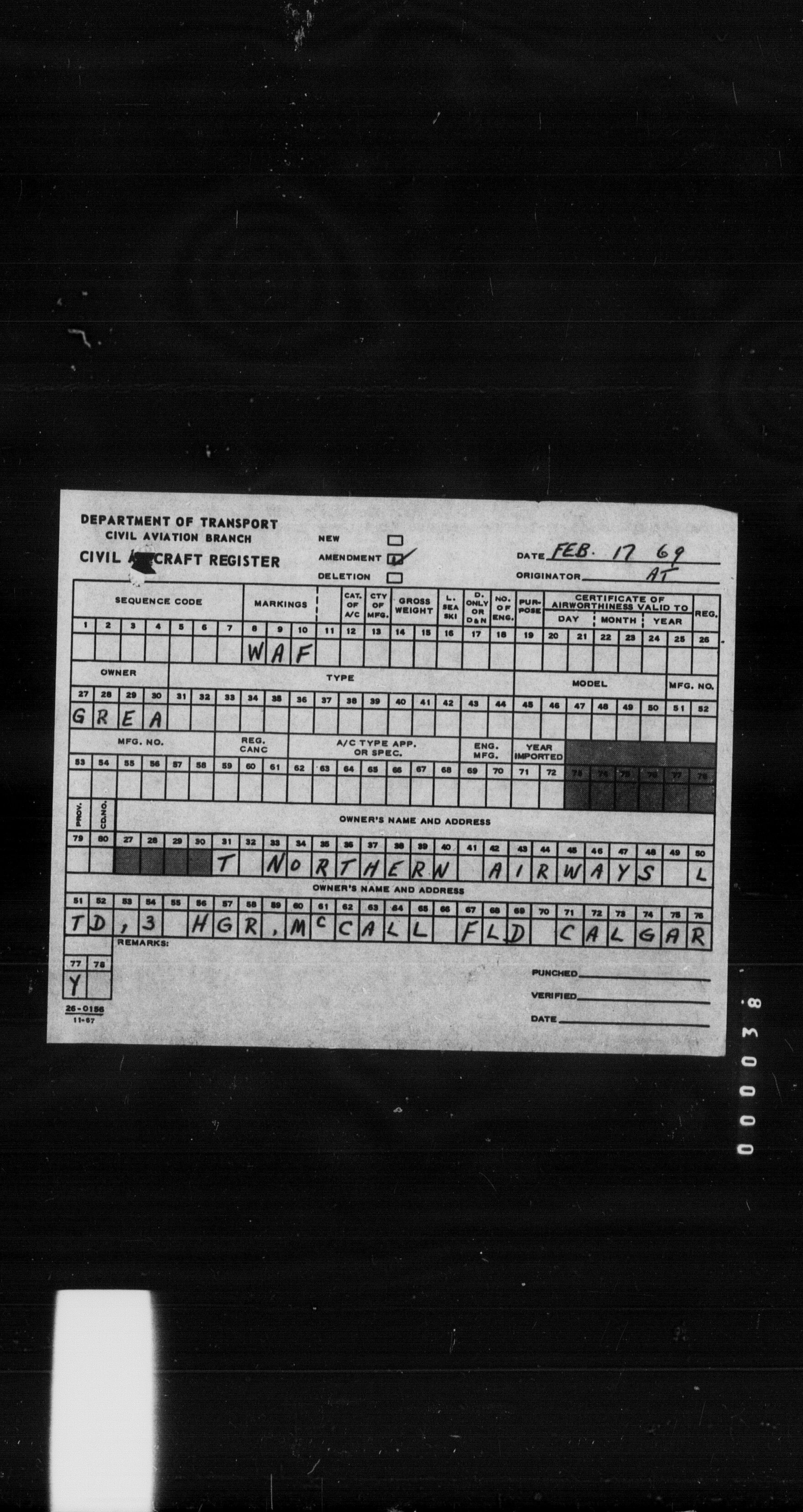 Department of Transport : Civil aircraft registration, inspection and operation files, block 5008, 1920-1986