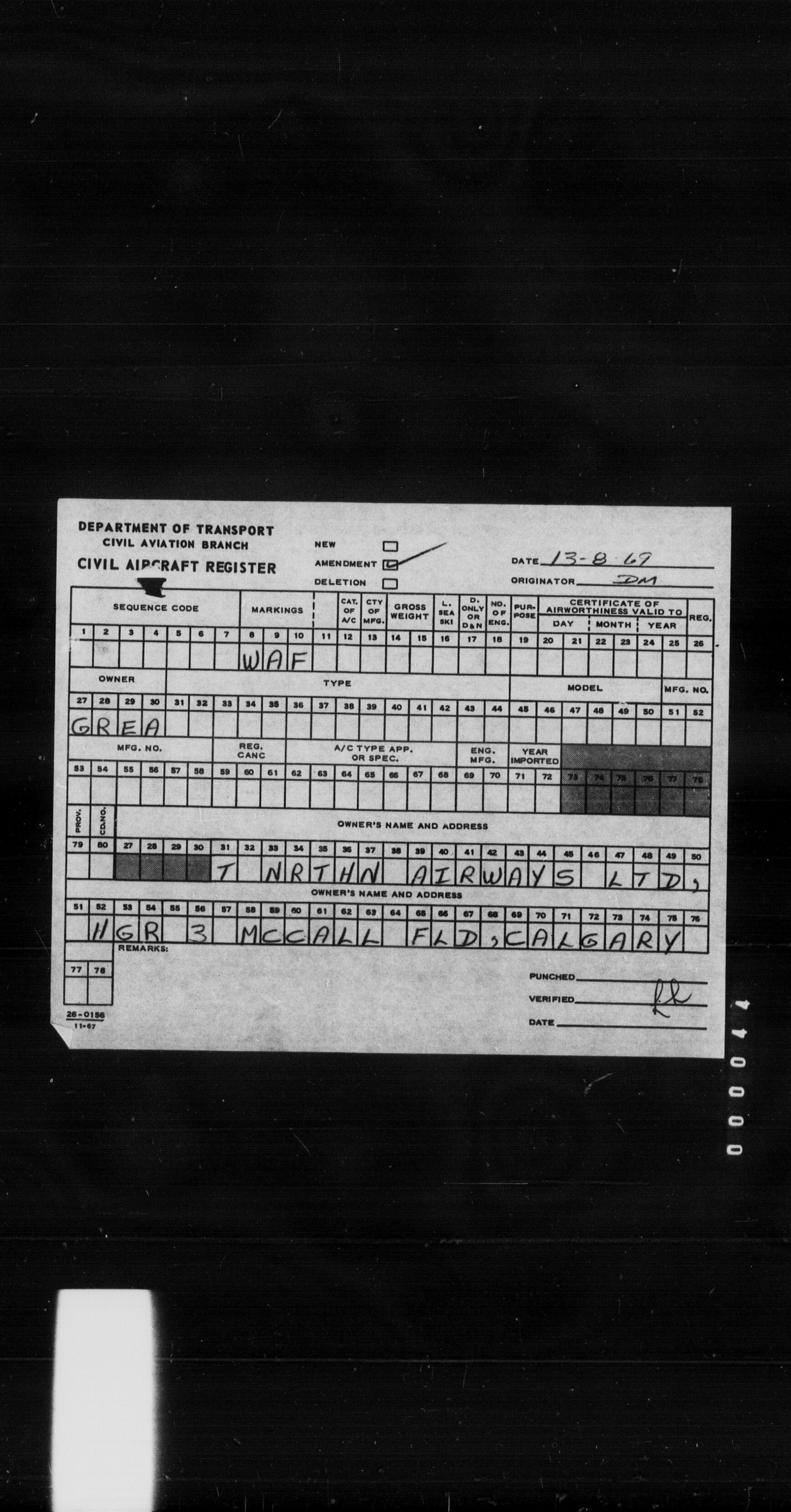 Department of Transport : Civil aircraft registration, inspection and operation files, block 5008, 1920-1986