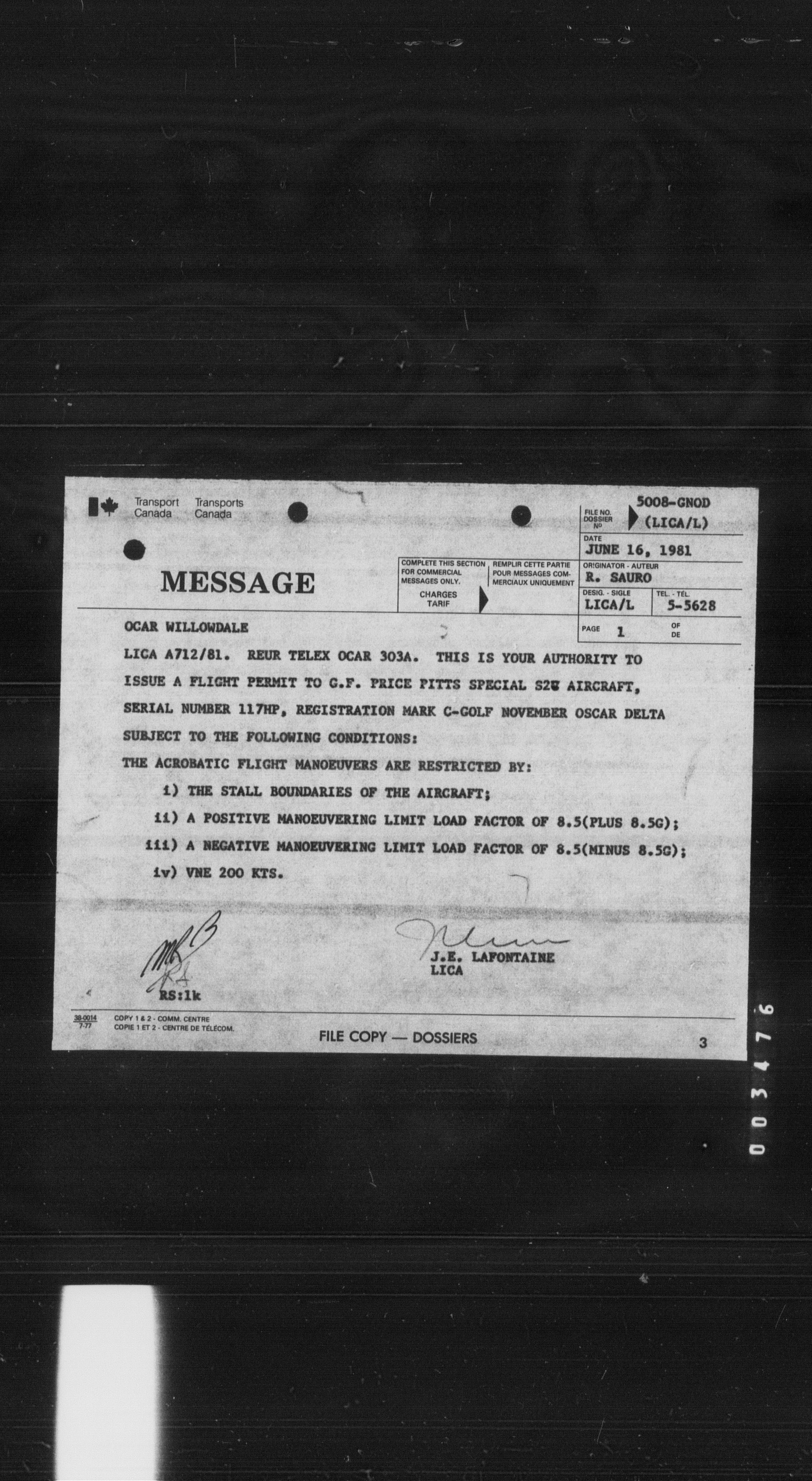 Department of Transport : Civil aircraft registration, inspection and operation files, block 5008, 1920-1986 - 8434