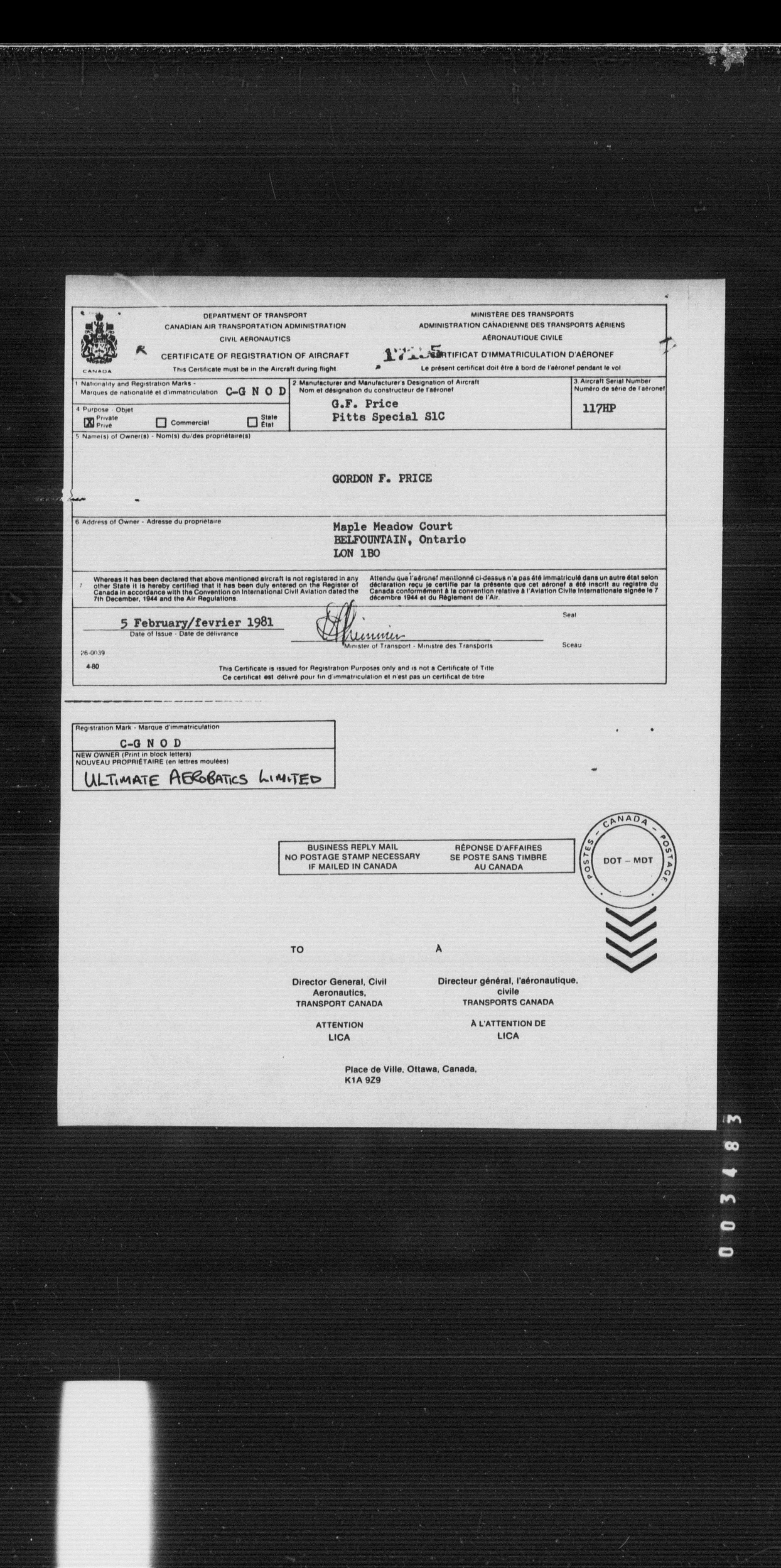 Department of Transport : Civil aircraft registration, inspection and operation files, block 5008, 1920-1986 - 8434