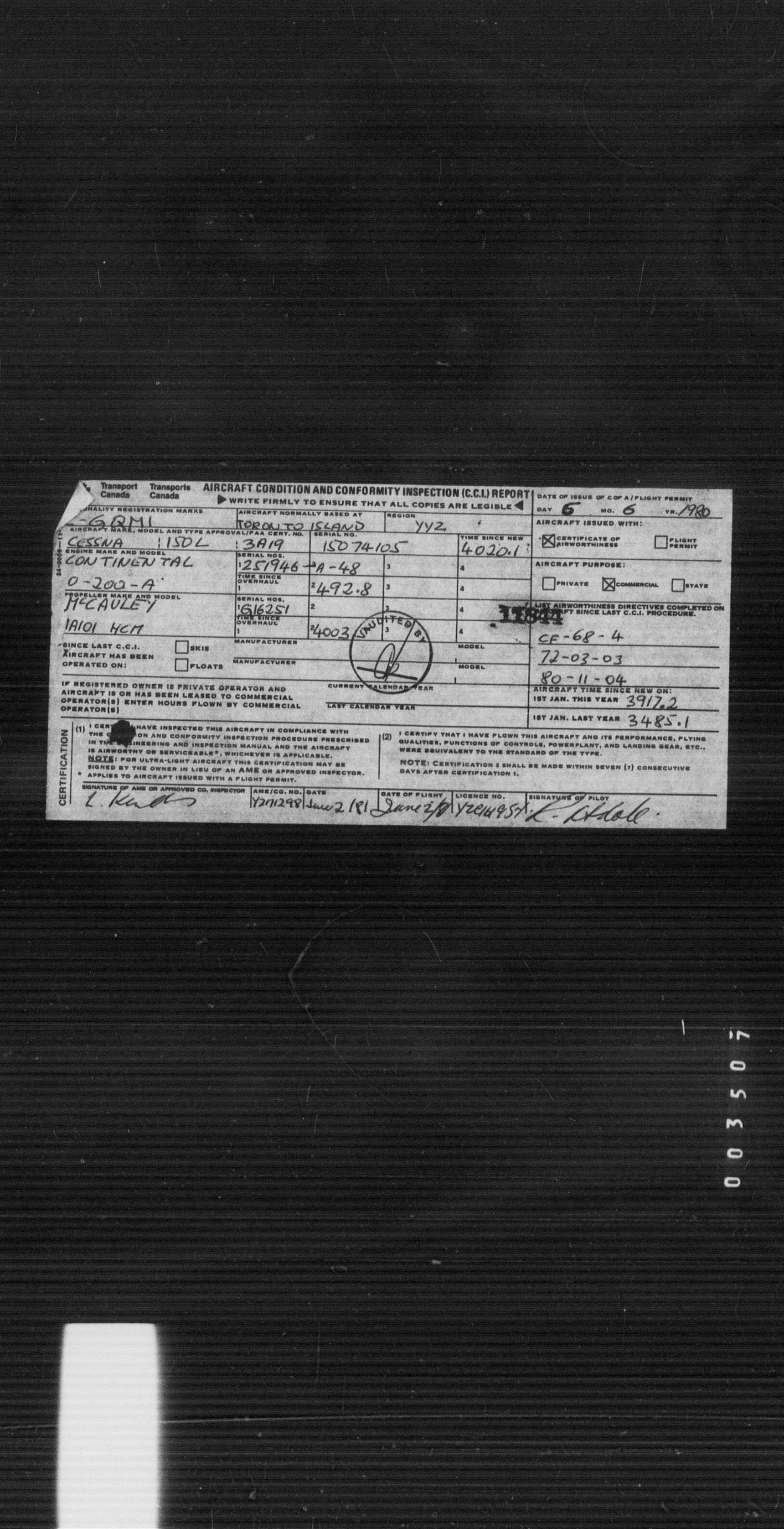 Department of Transport : Civil aircraft registration, inspection and operation files, block 5008, 1920-1986 - 8435