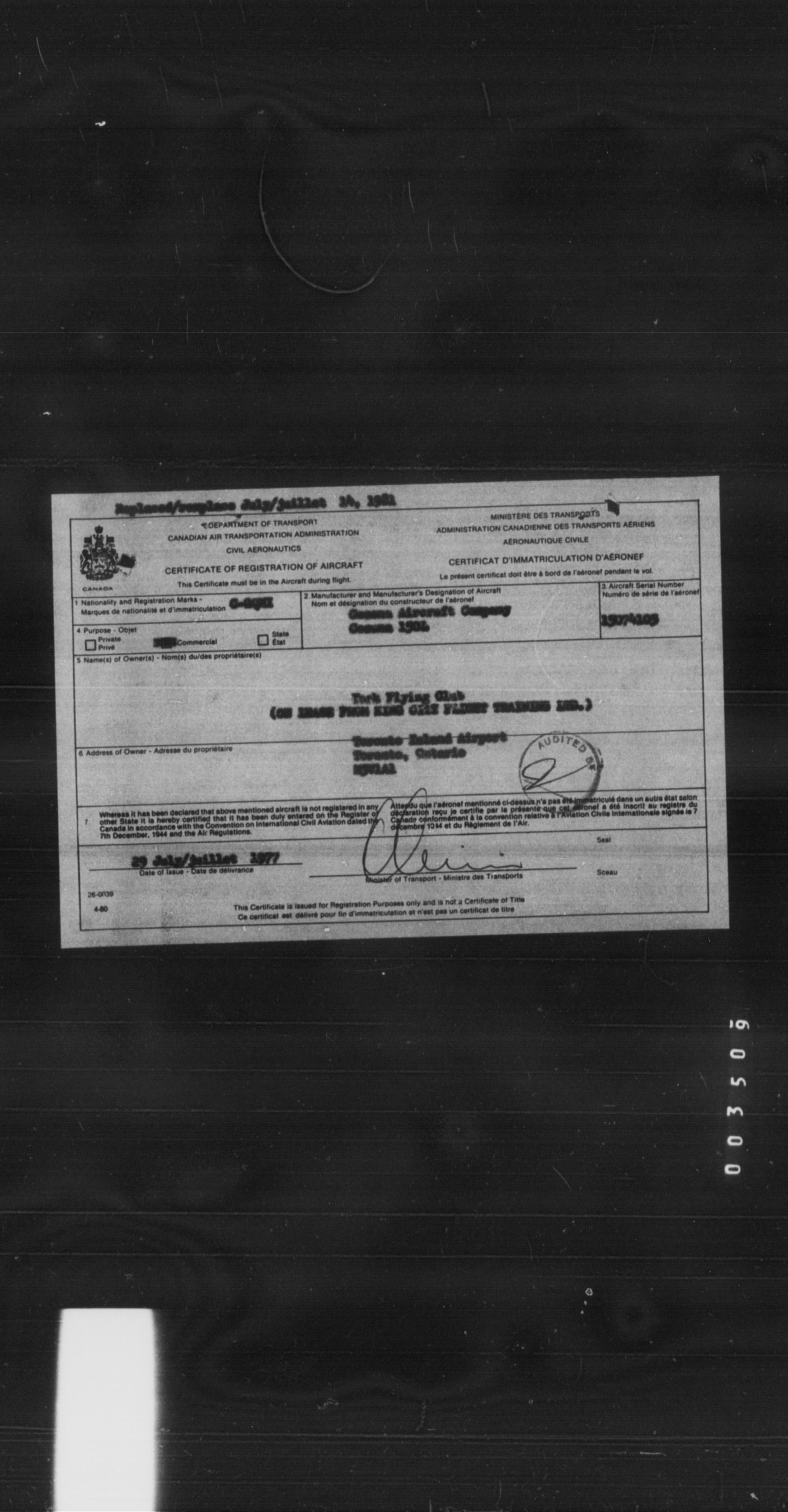 Department of Transport : Civil aircraft registration, inspection and operation files, block 5008, 1920-1986 - 8435