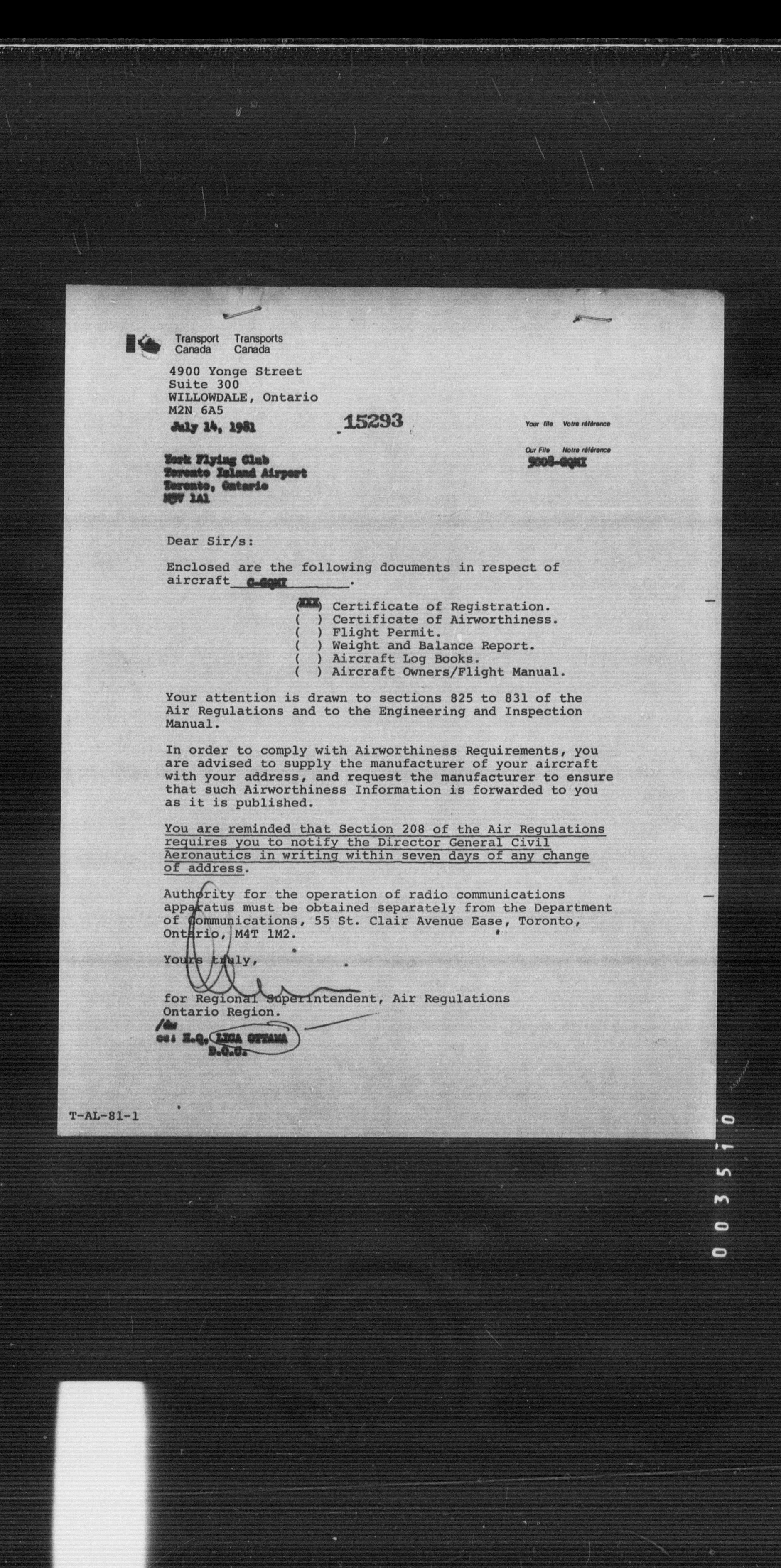 Department of Transport : Civil aircraft registration, inspection and operation files, block 5008, 1920-1986 - 8435