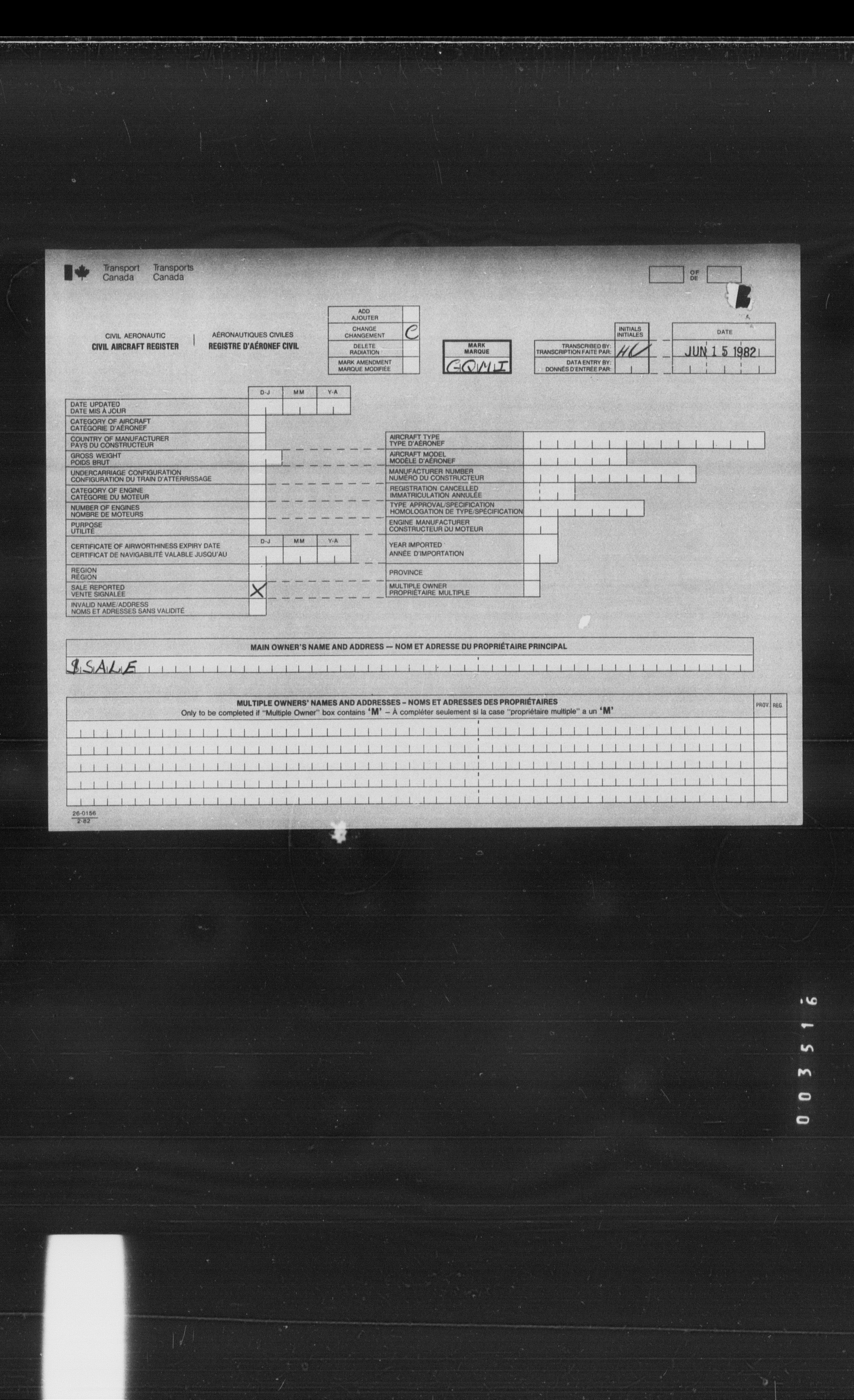 Department of Transport : Civil aircraft registration, inspection and operation files, block 5008, 1920-1986 - 8435