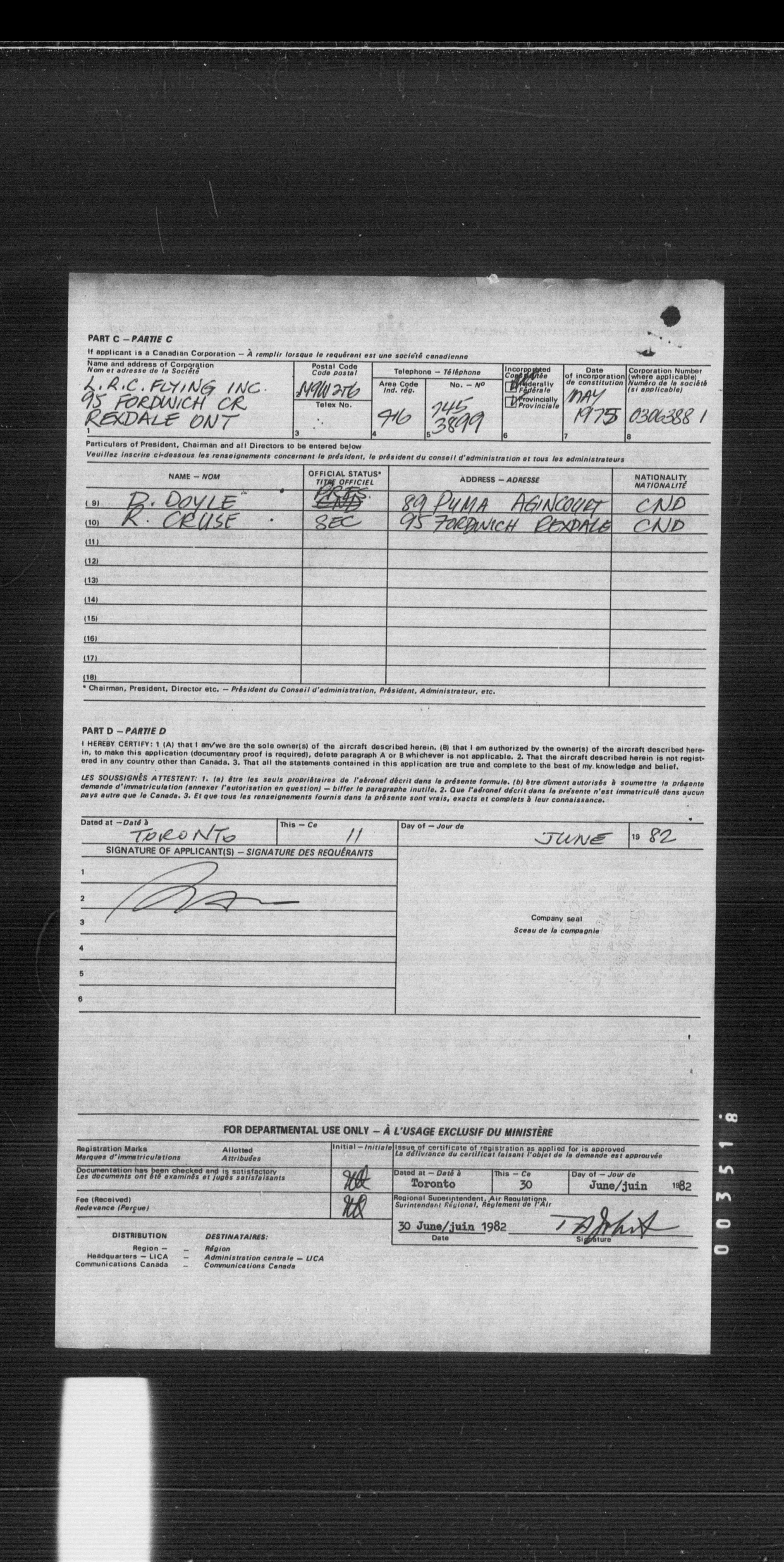 Department of Transport : Civil aircraft registration, inspection and operation files, block 5008, 1920-1986 - 8435