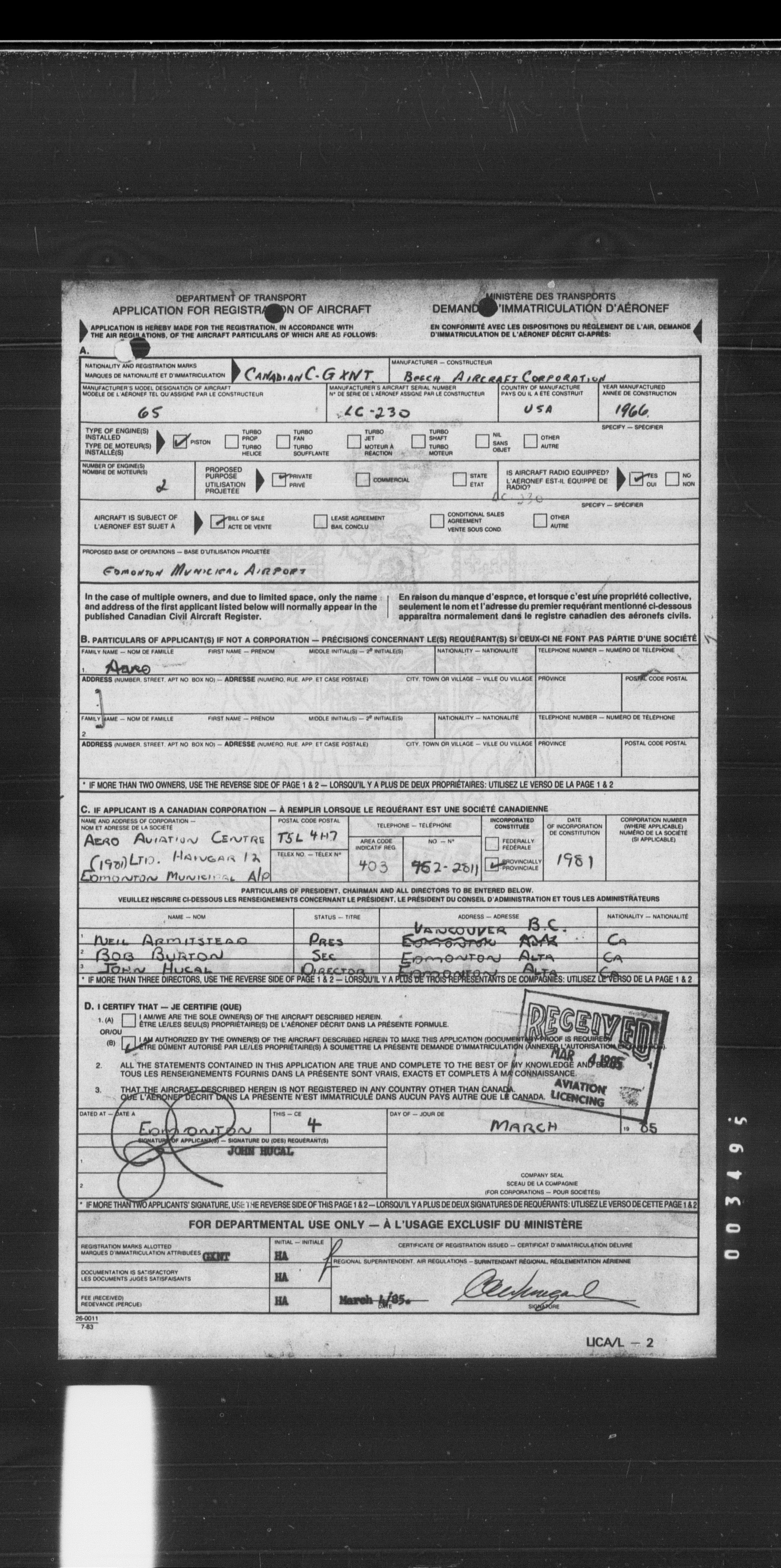 Department of Transport : Civil aircraft registration, inspection and operation files, block 5008, 1920-1986 - 8437