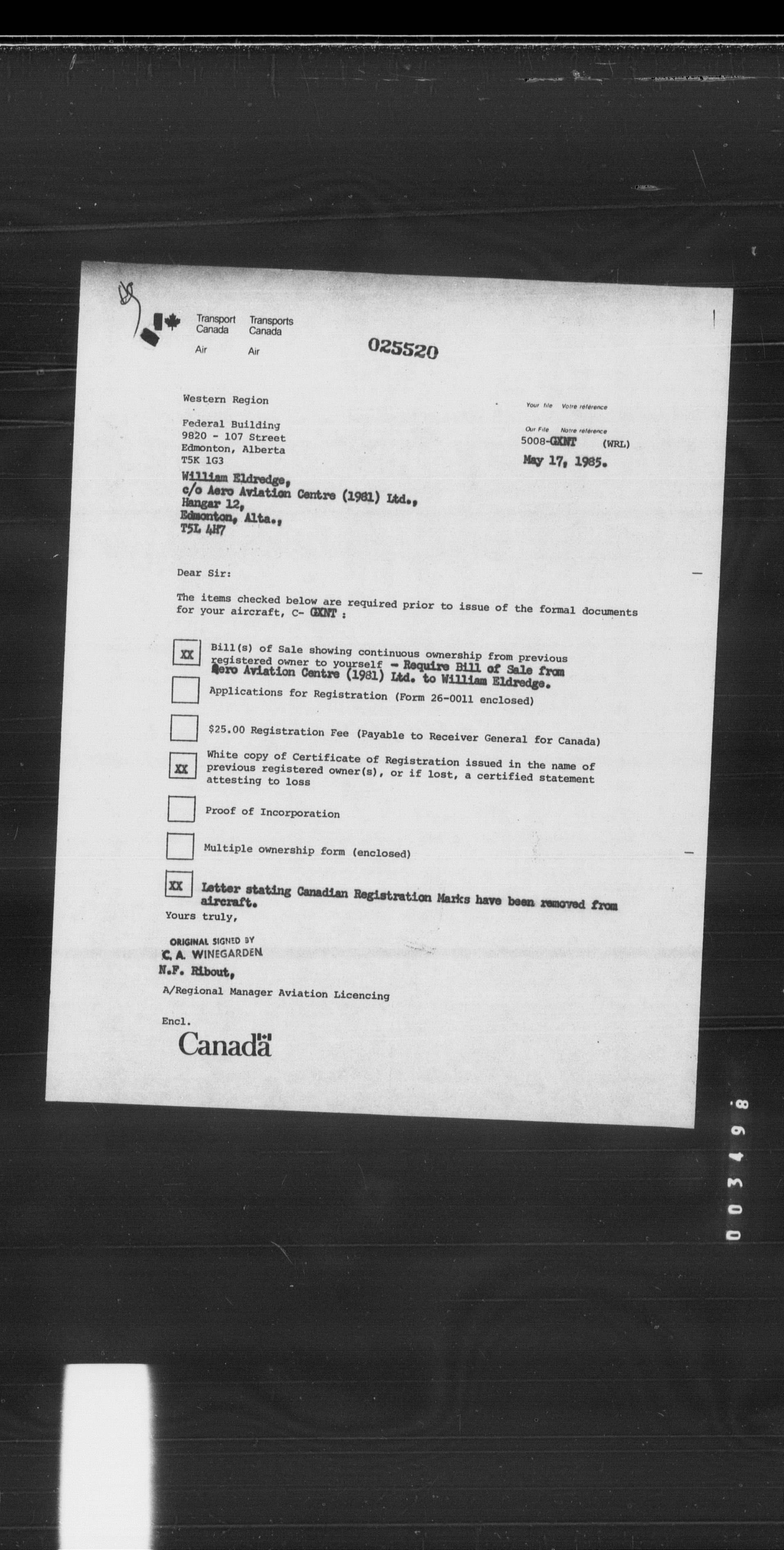 Department of Transport : Civil aircraft registration, inspection and operation files, block 5008, 1920-1986 - 8437