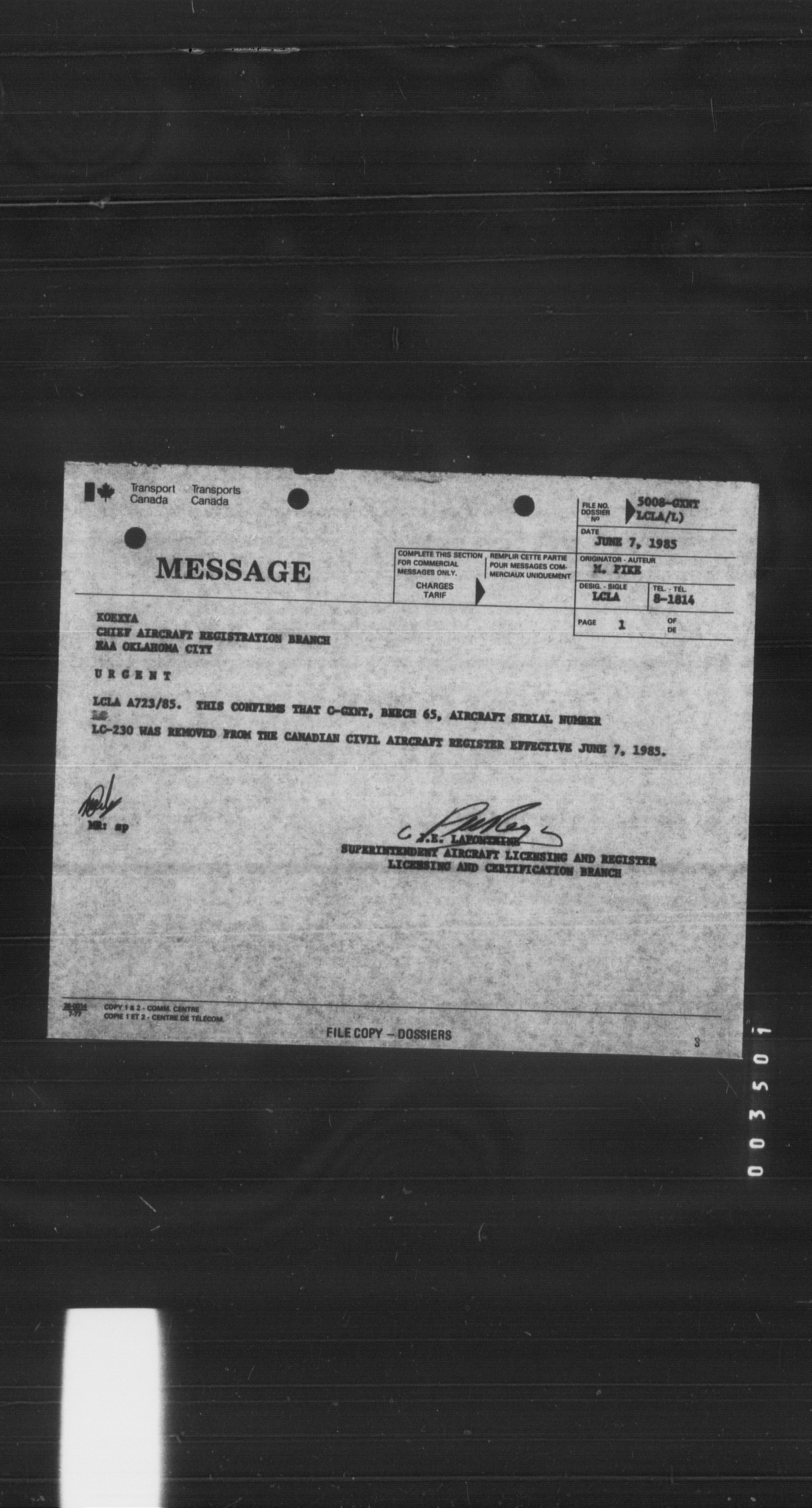 Department of Transport : Civil aircraft registration, inspection and operation files, block 5008, 1920-1986 - 8437