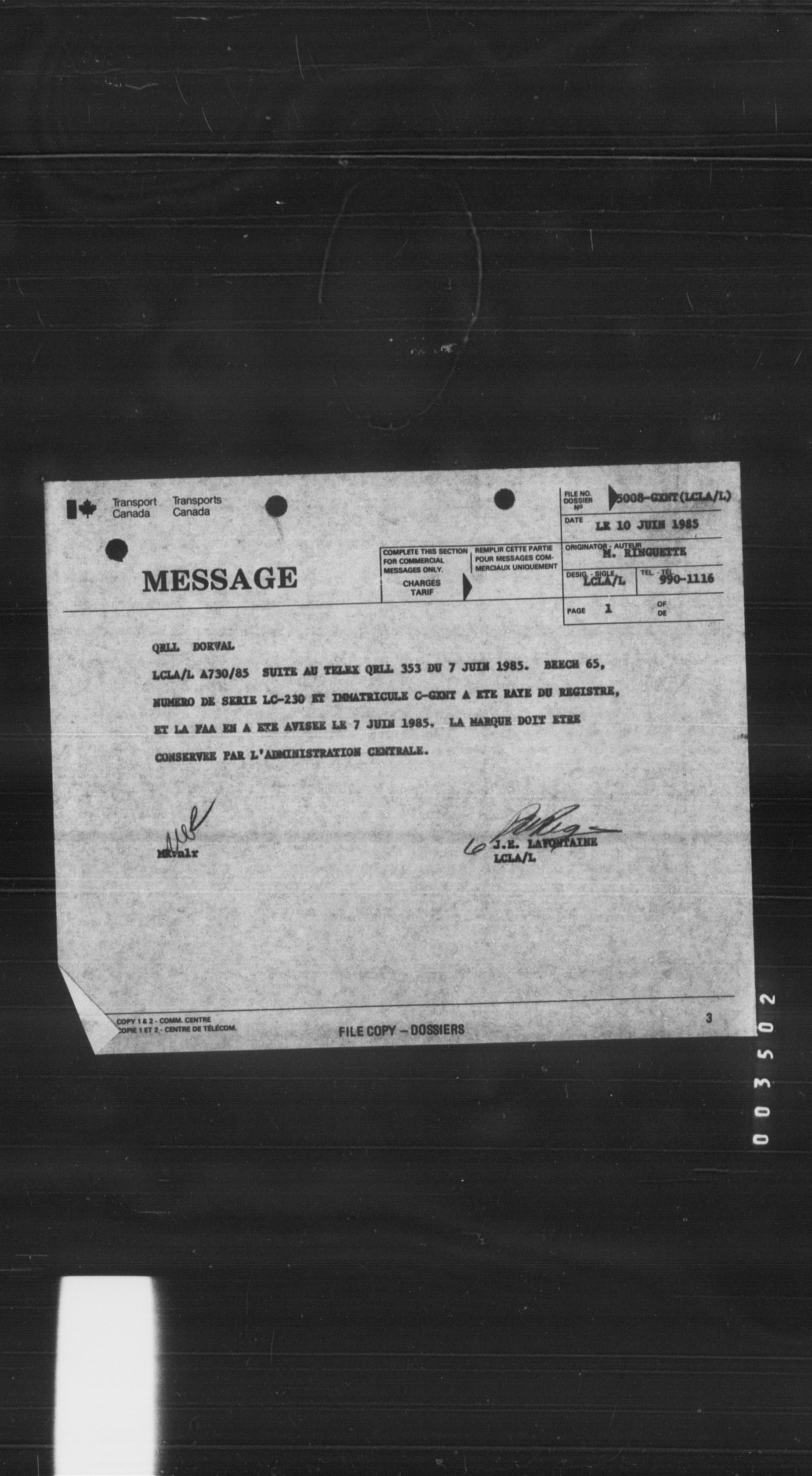 Department of Transport : Civil aircraft registration, inspection and operation files, block 5008, 1920-1986 - 8437