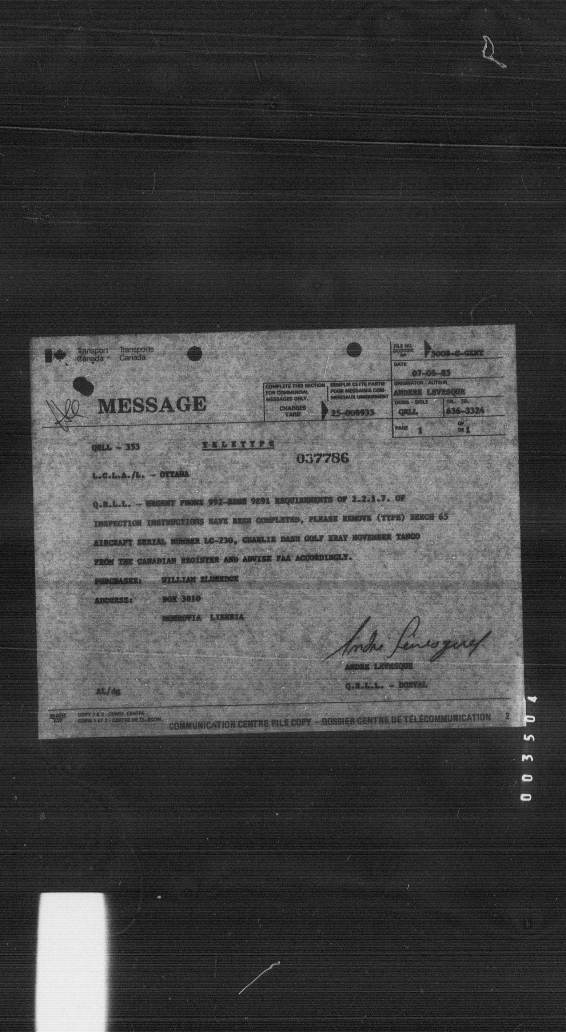 Department of Transport : Civil aircraft registration, inspection and operation files, block 5008, 1920-1986 - 8437