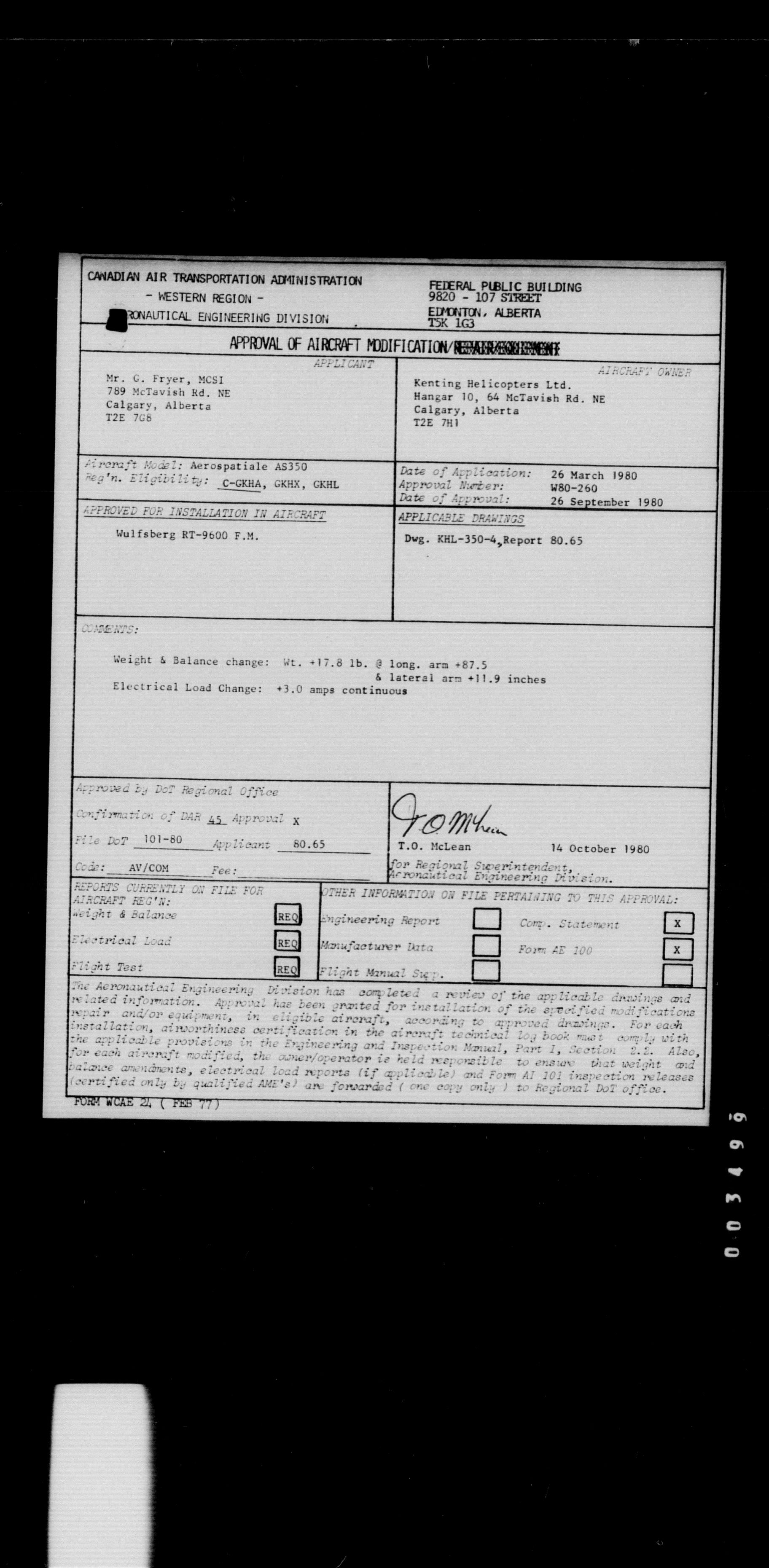Department of Transport : Civil aircraft registration, inspection and operation files, block 5008, 1920-1986 - 8440