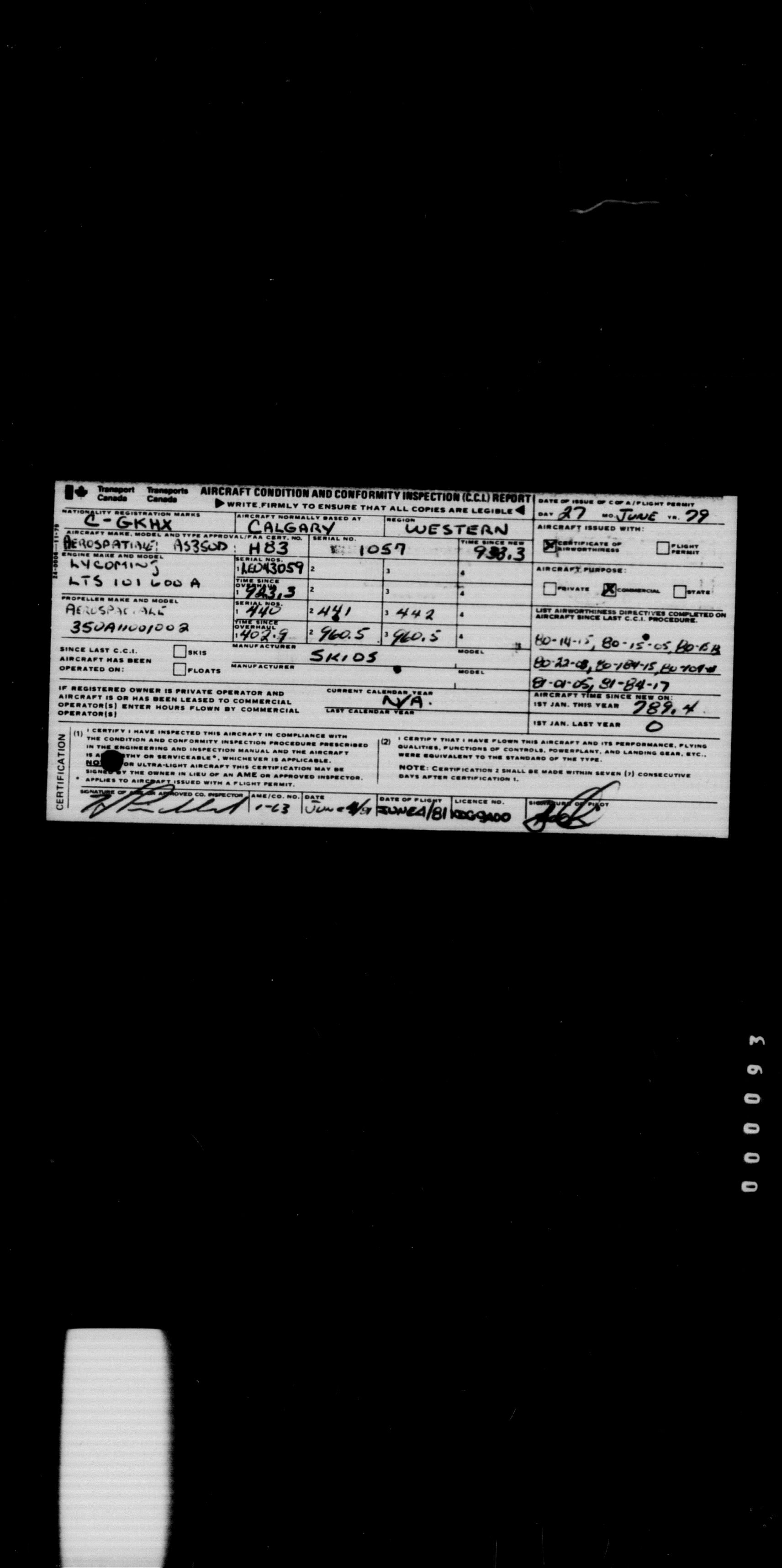 Department of Transport : Civil aircraft registration, inspection and operation files, block 5008, 1920-1986 - 8441