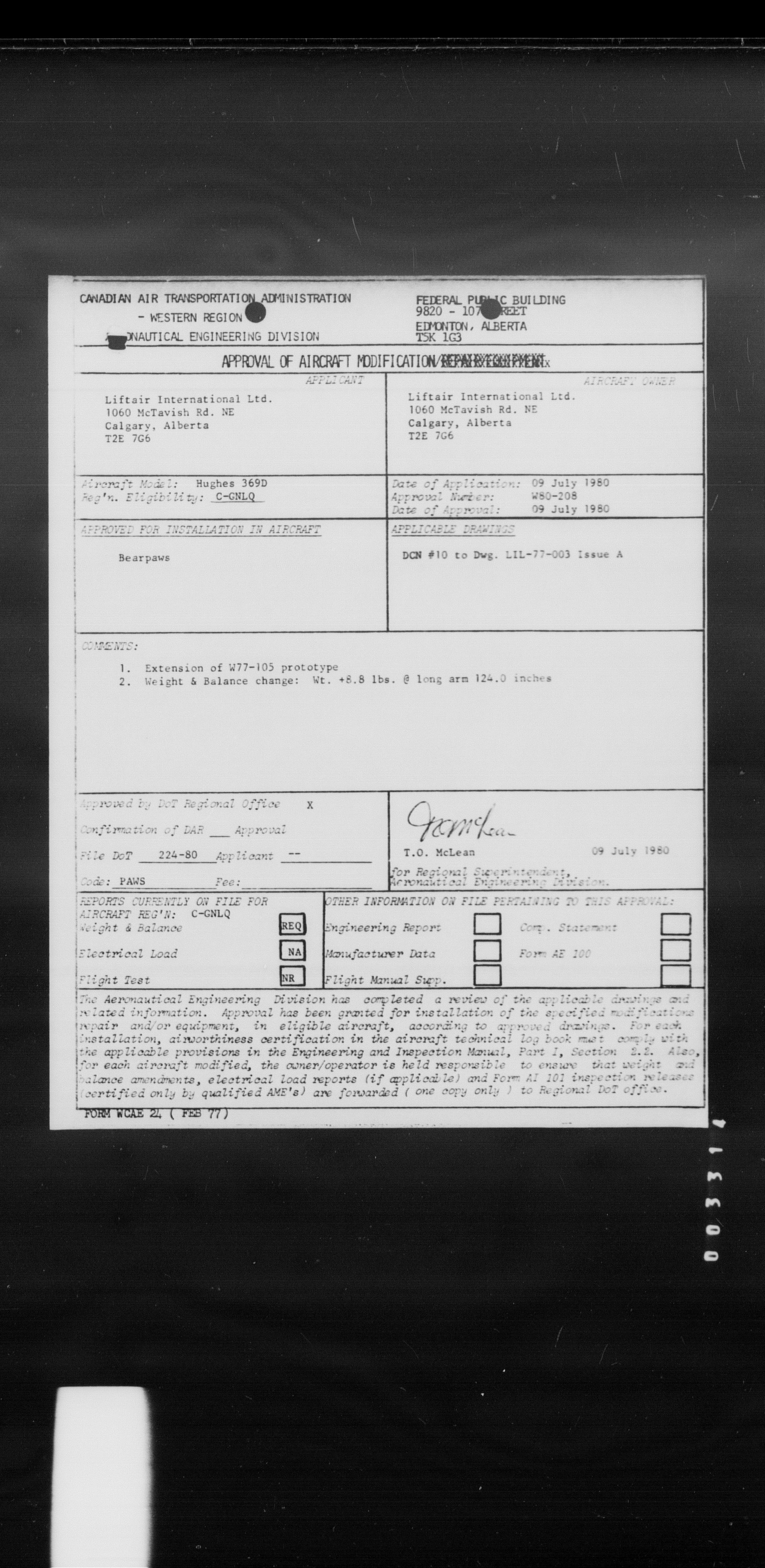 Department of Transport : Civil aircraft registration, inspection and operation files, block 5008, 1920-1986 - 8442