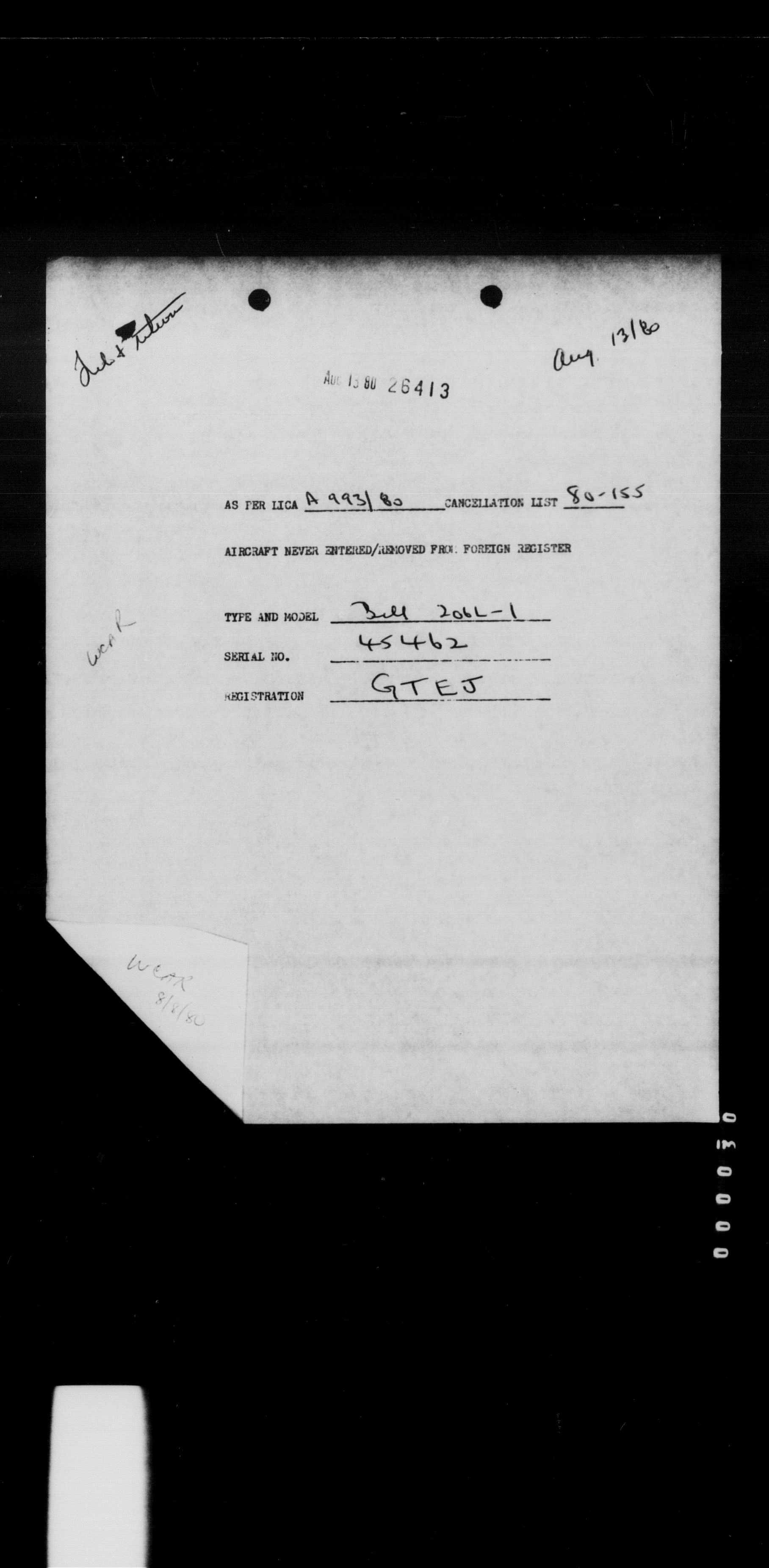Department of Transport : Civil aircraft registration, inspection and operation files, block 5008, 1920-1986 - 8444