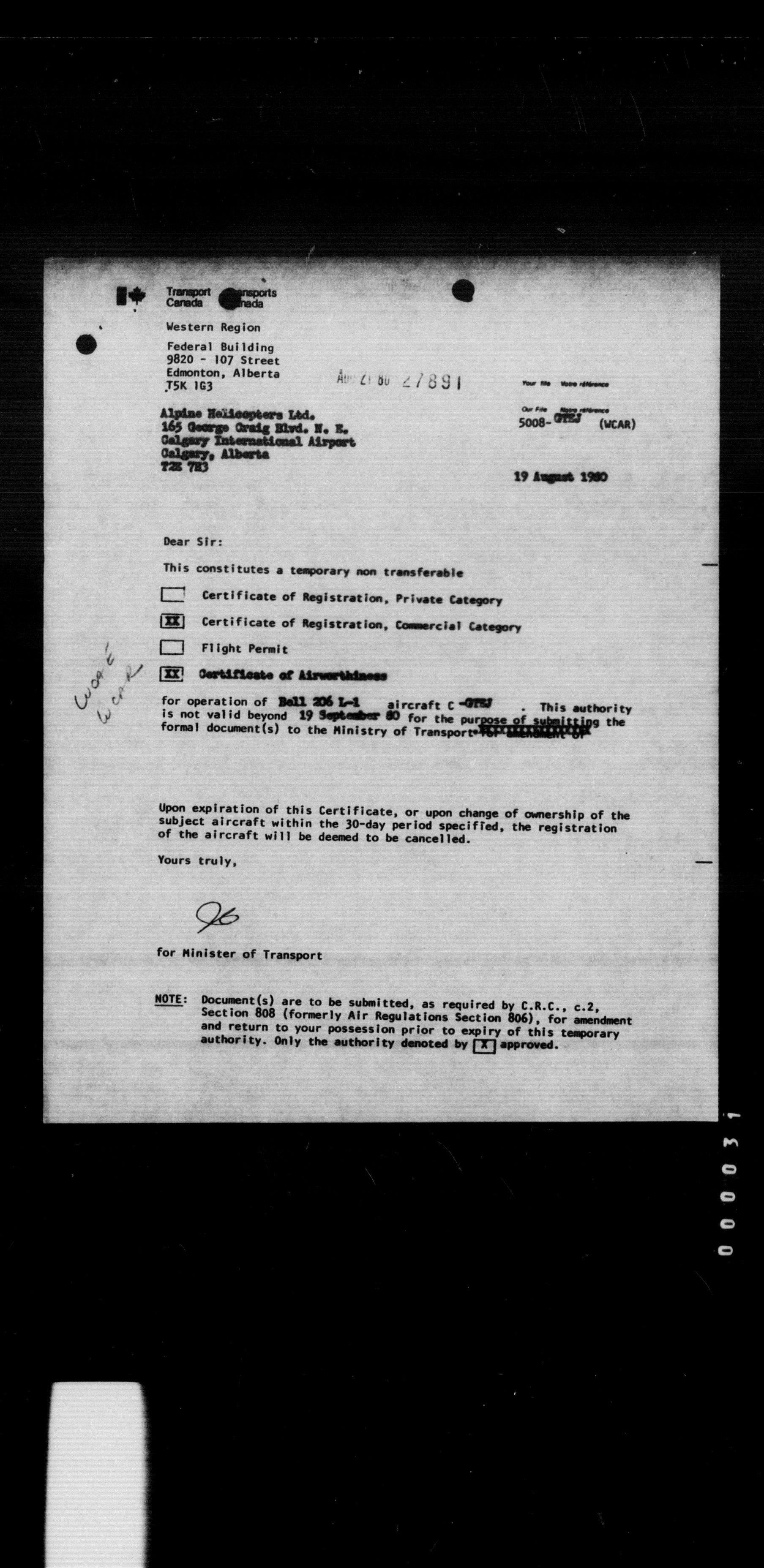 Department of Transport : Civil aircraft registration, inspection and operation files, block 5008, 1920-1986 - 8444