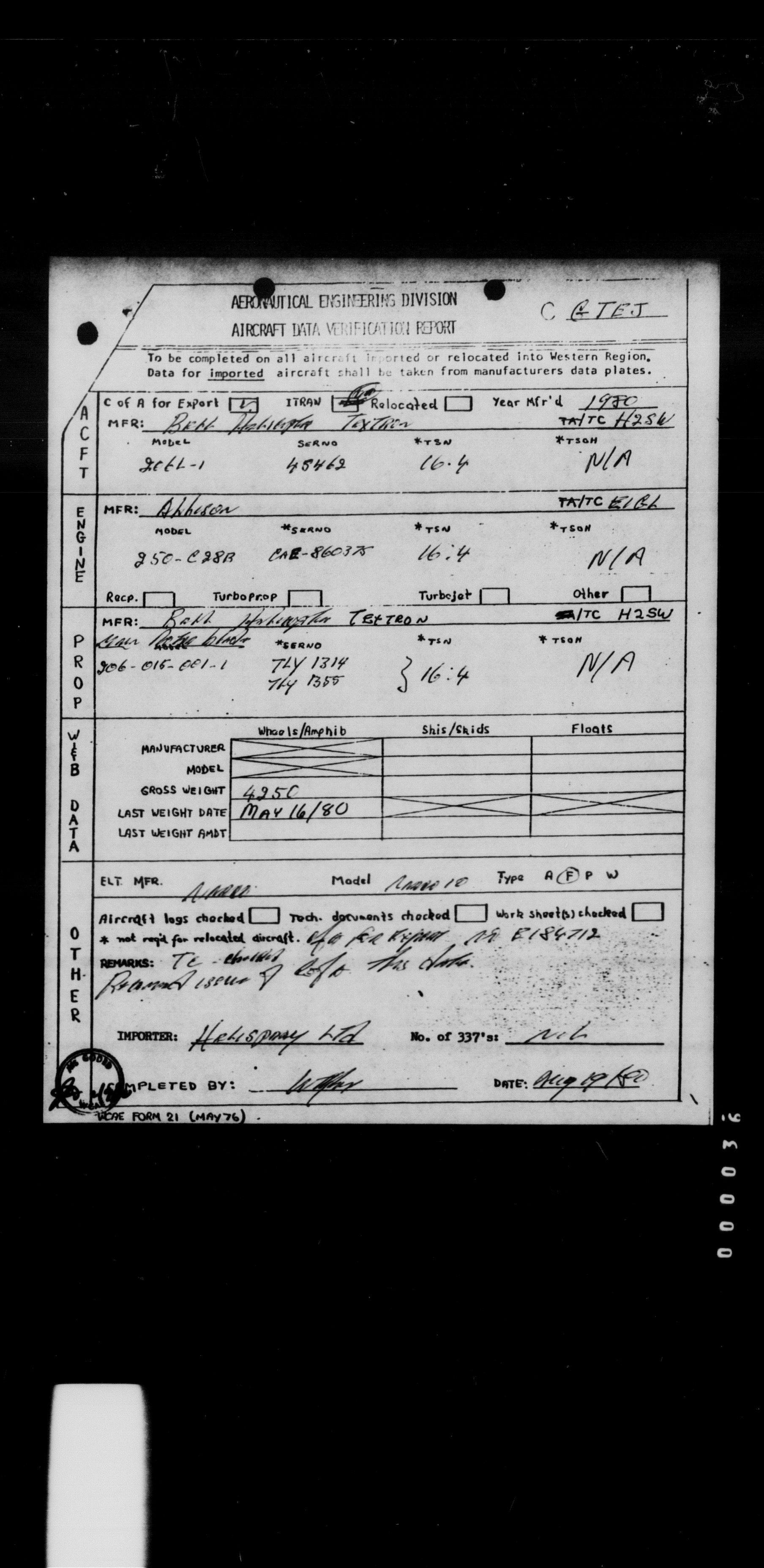 Department of Transport : Civil aircraft registration, inspection and operation files, block 5008, 1920-1986 - 8444