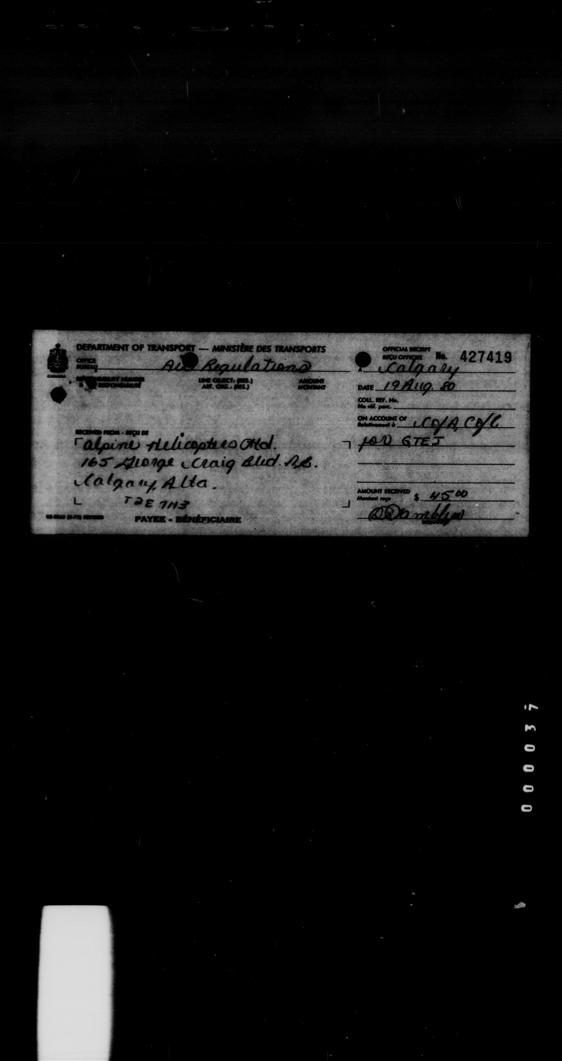 Department of Transport : Civil aircraft registration, inspection and operation files, block 5008, 1920-1986 - 8444