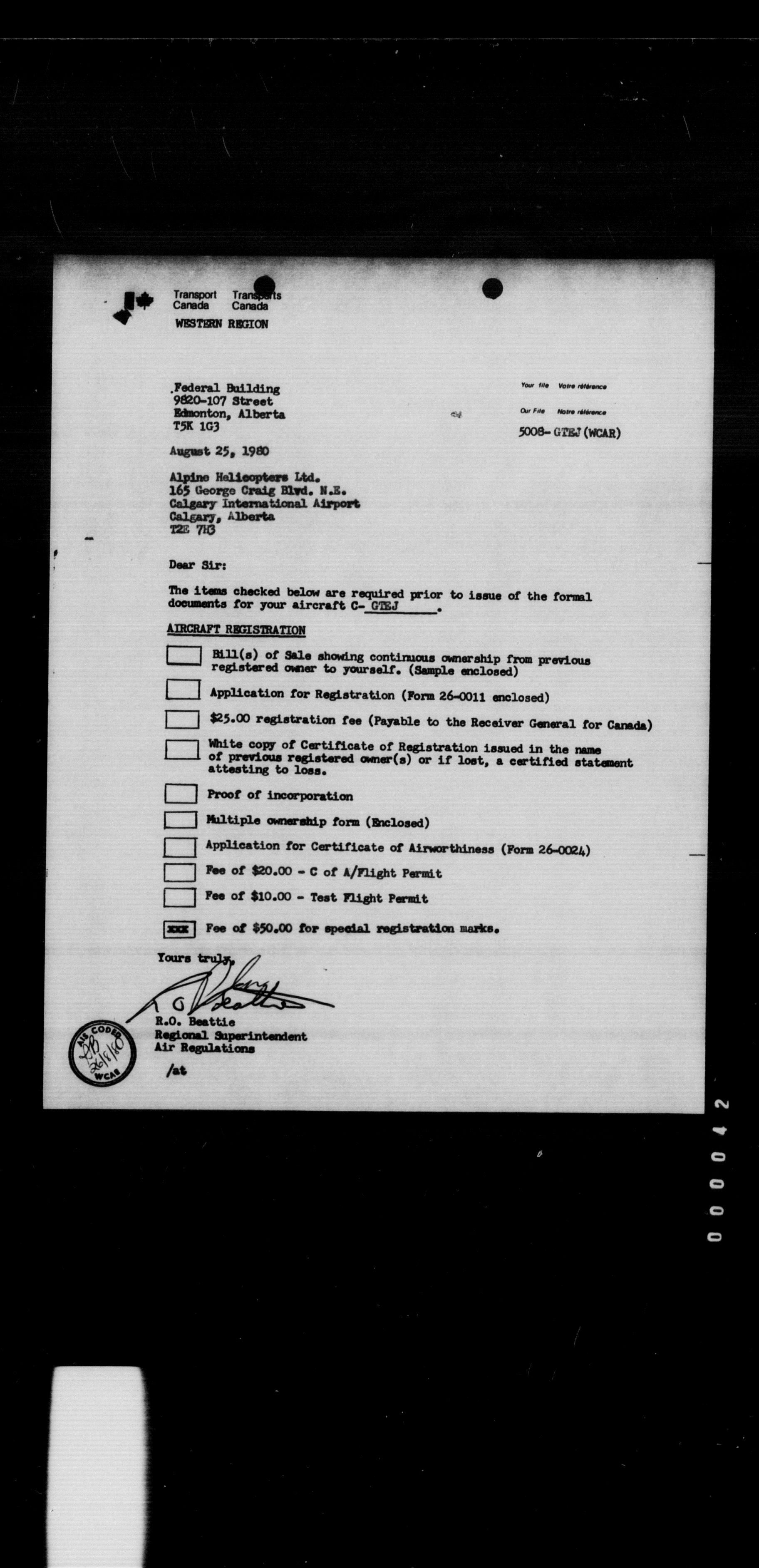 Department of Transport : Civil aircraft registration, inspection and operation files, block 5008, 1920-1986 - 8444