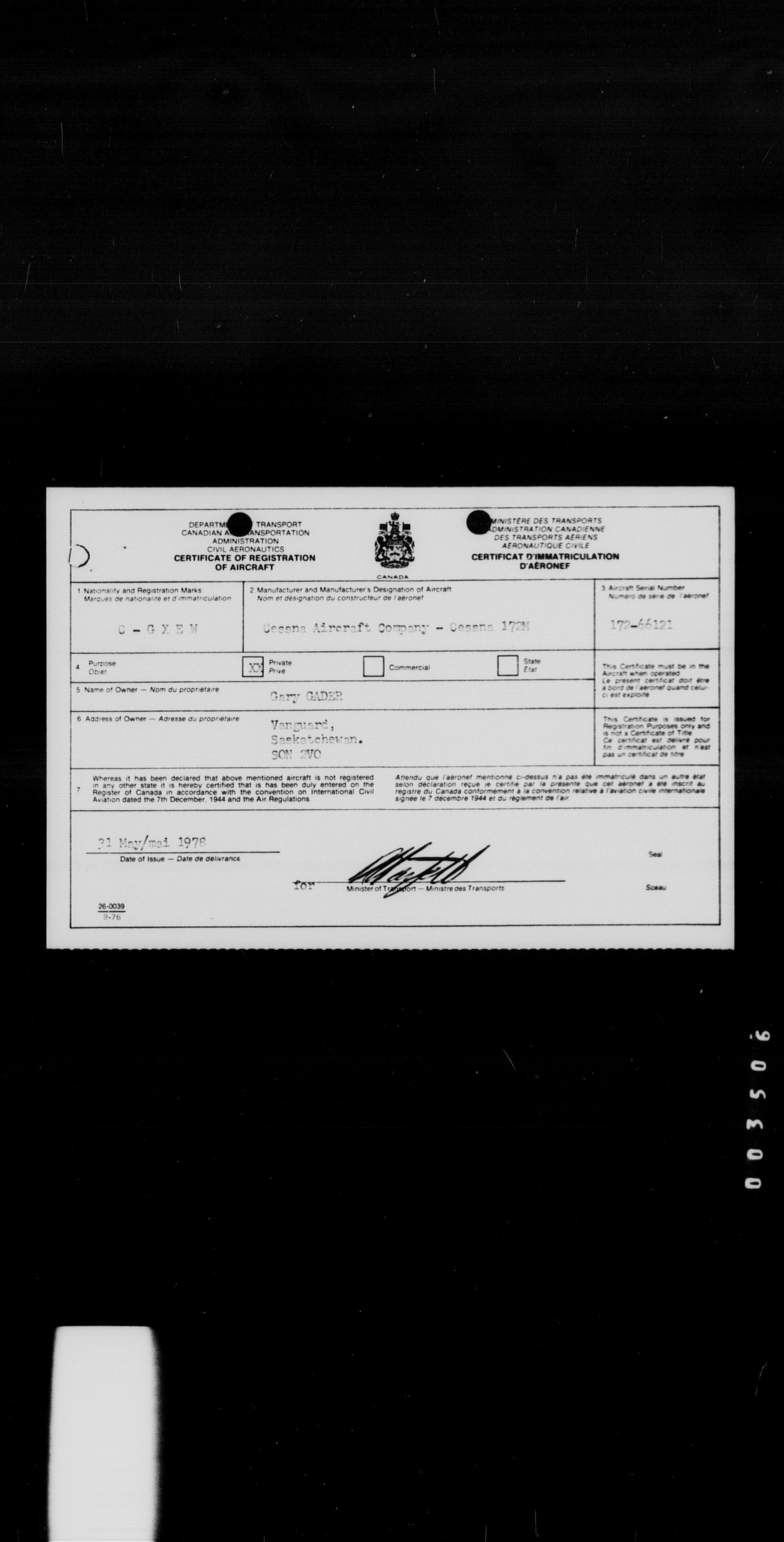 Department of Transport : Civil aircraft registration, inspection and operation files, block 5008, 1920-1986 - 8444