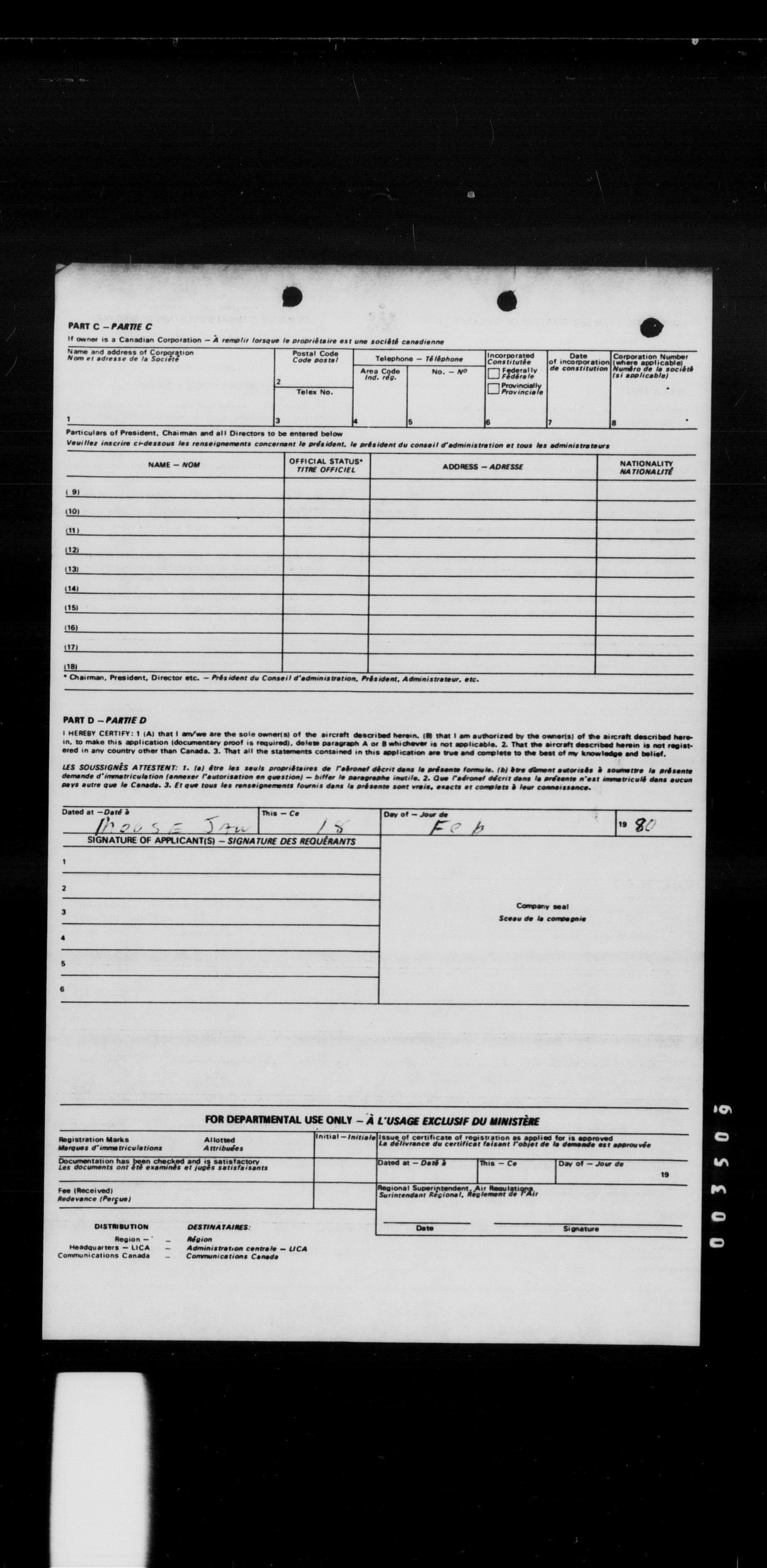 Department of Transport : Civil aircraft registration, inspection and operation files, block 5008, 1920-1986 - 8444