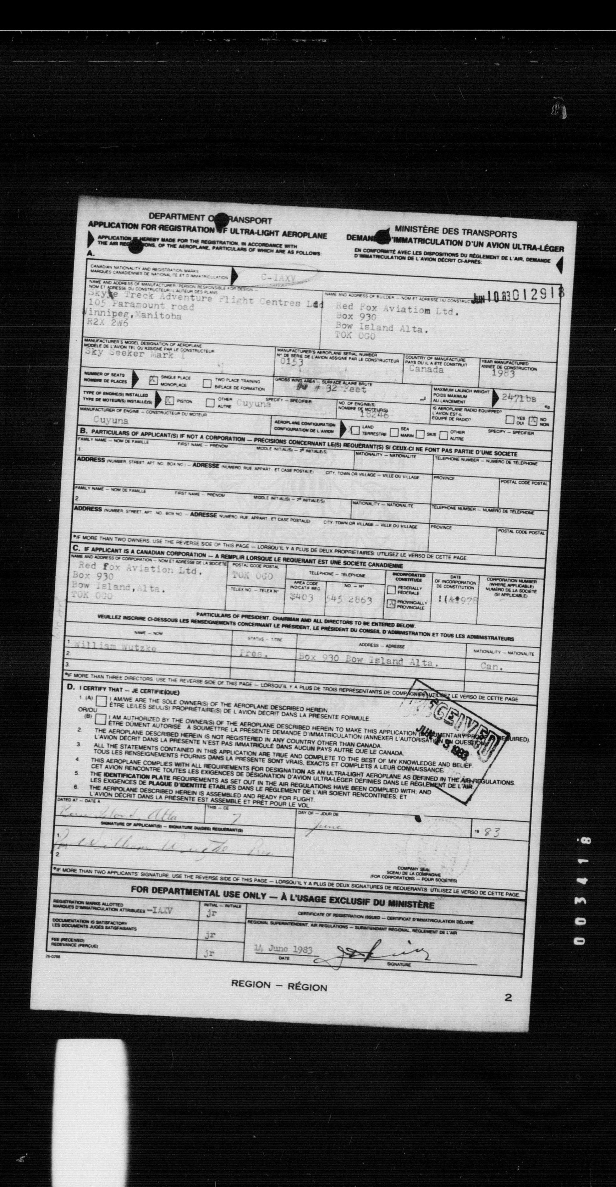 Department of Transport : Civil aircraft registration, inspection and operation files, block 5008, 1920-1986 - 8446