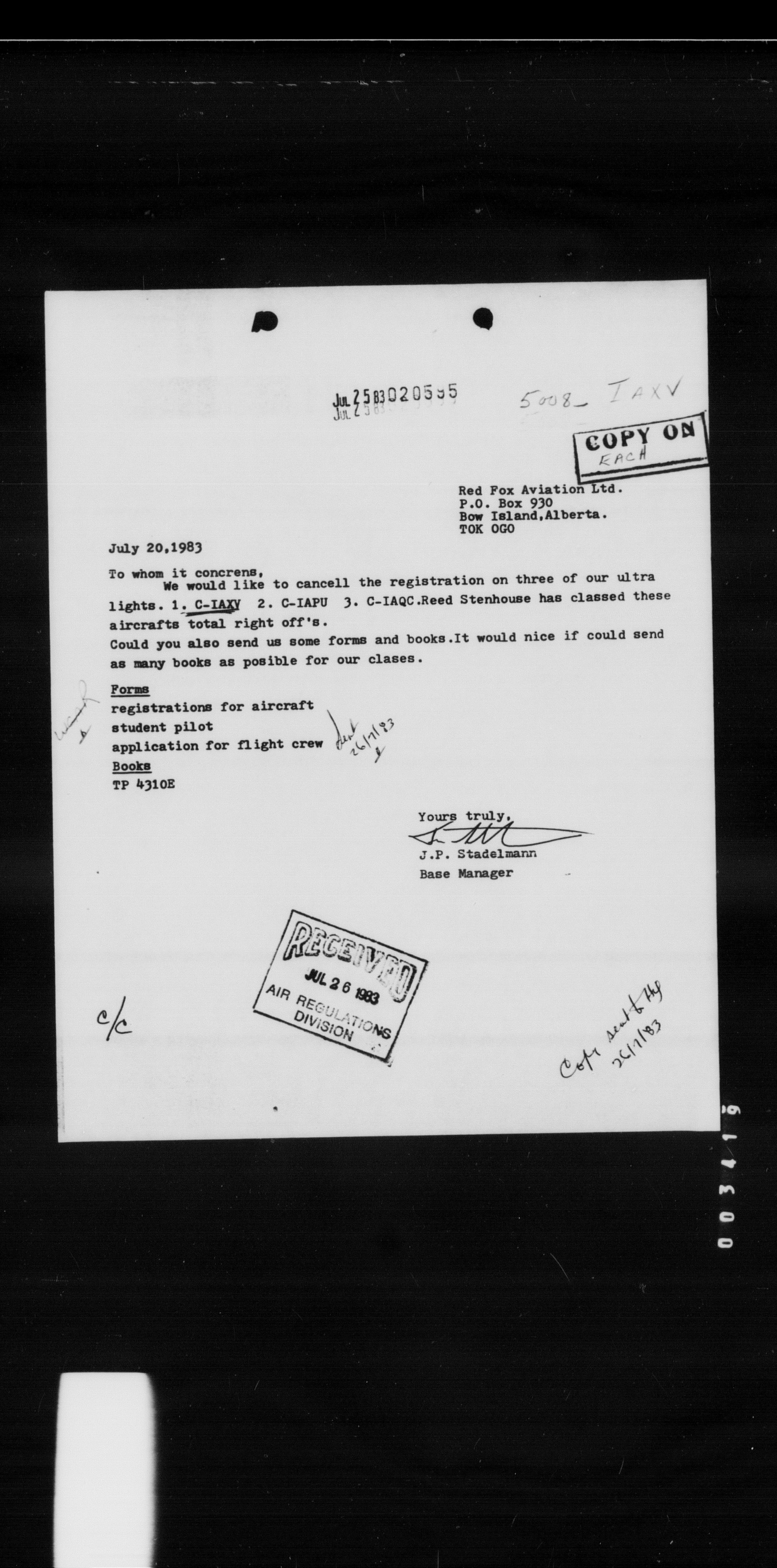 Department of Transport : Civil aircraft registration, inspection and operation files, block 5008, 1920-1986 - 8446