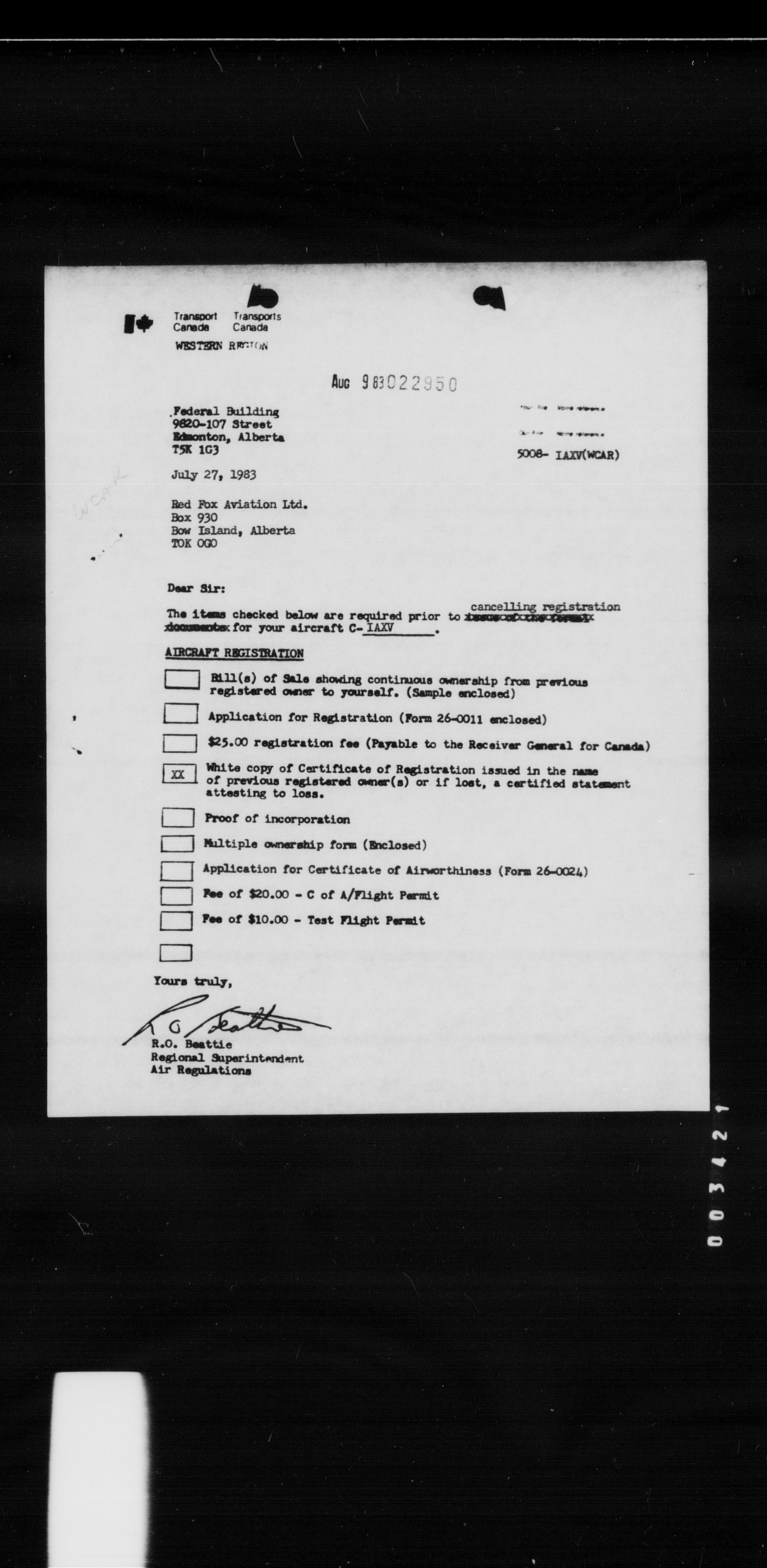 Department of Transport : Civil aircraft registration, inspection and operation files, block 5008, 1920-1986 - 8446