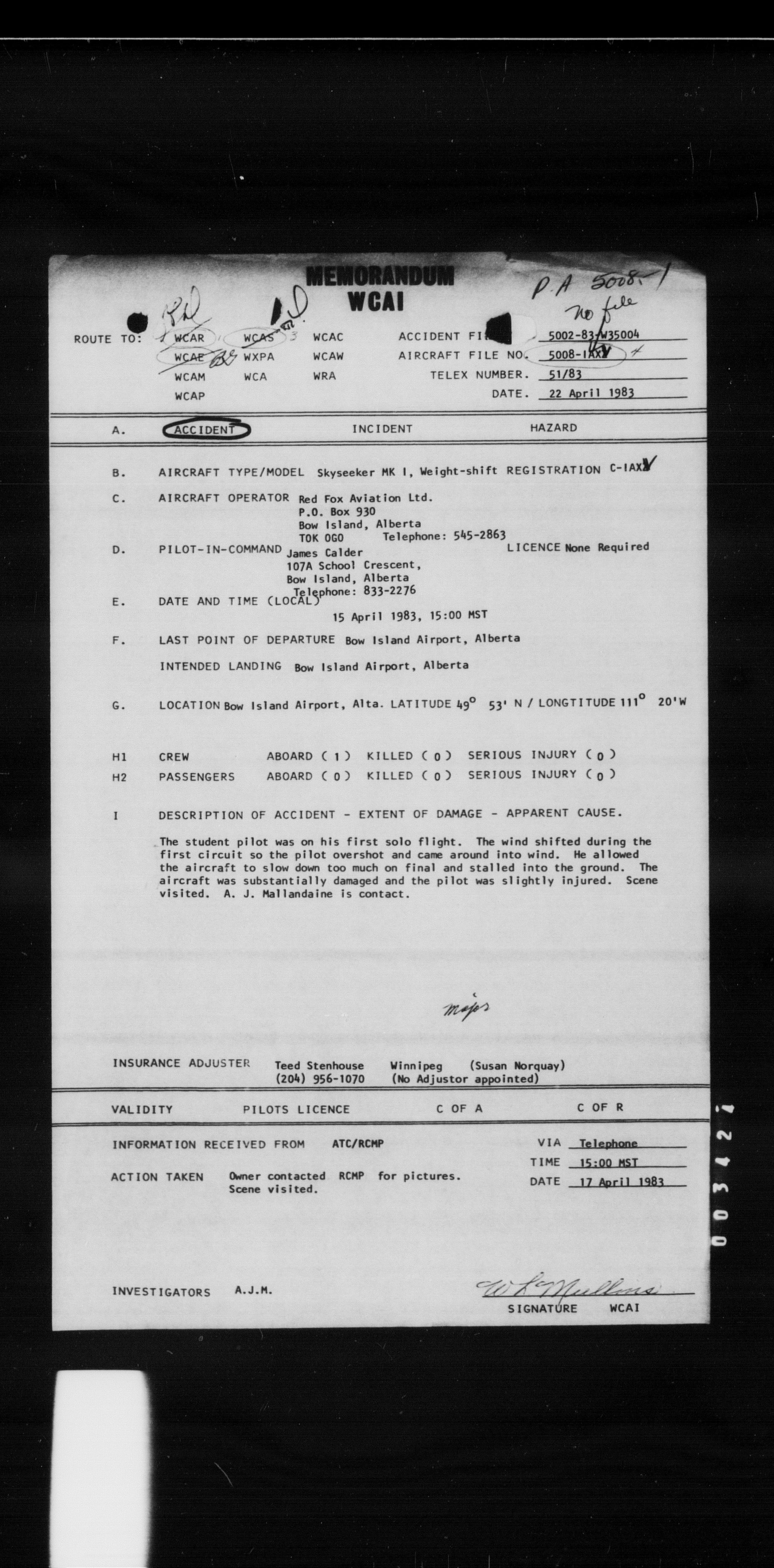 Department of Transport : Civil aircraft registration, inspection and operation files, block 5008, 1920-1986 - 8446
