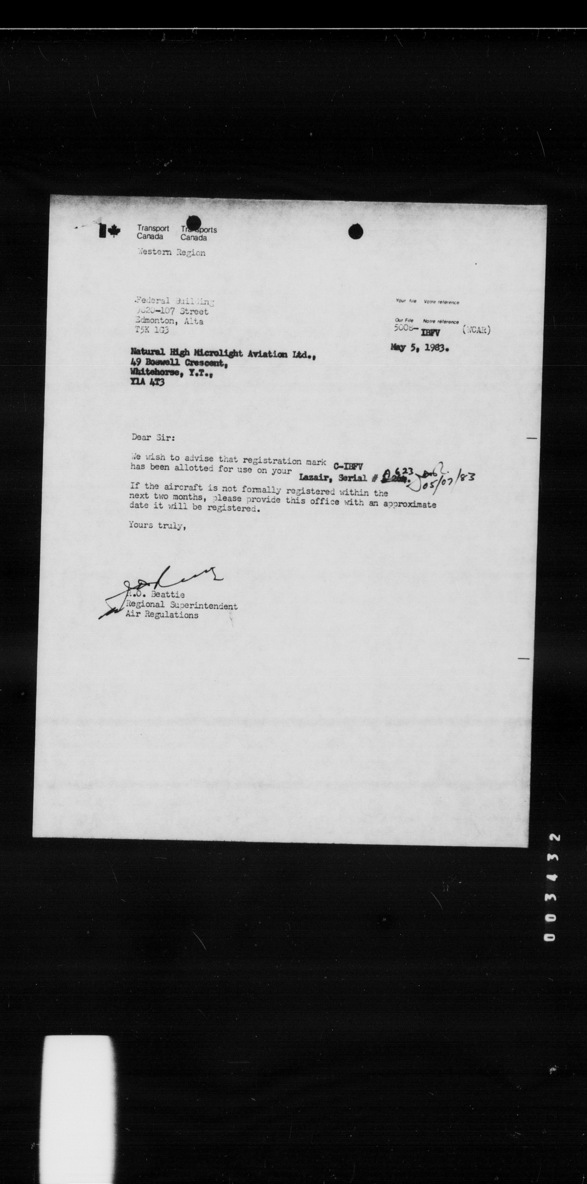 Department of Transport : Civil aircraft registration, inspection and operation files, block 5008, 1920-1986 - 8446