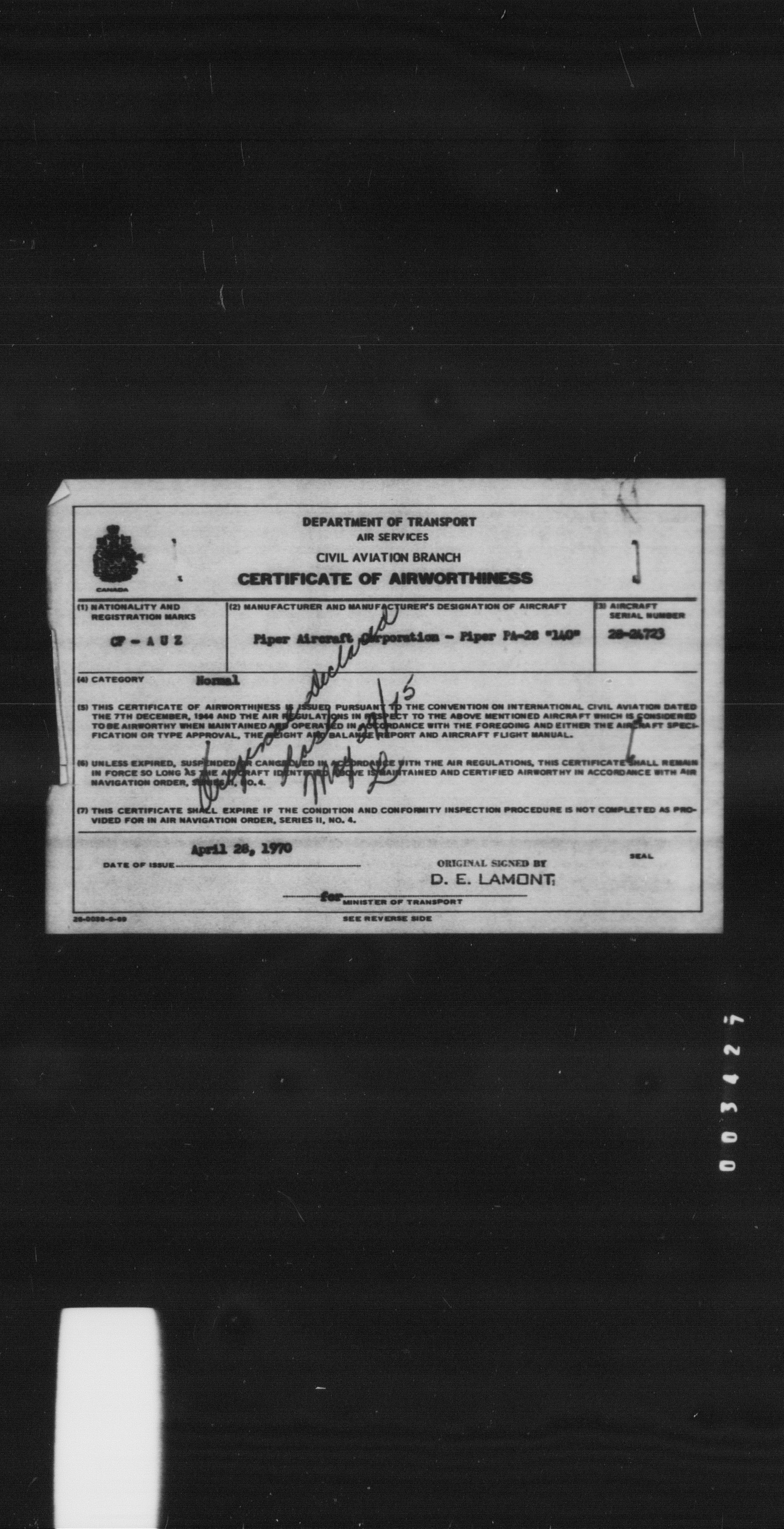 Department of Transport : Civil aircraft registration, inspection and operation files, block 5008, 1920-1986 - 8448