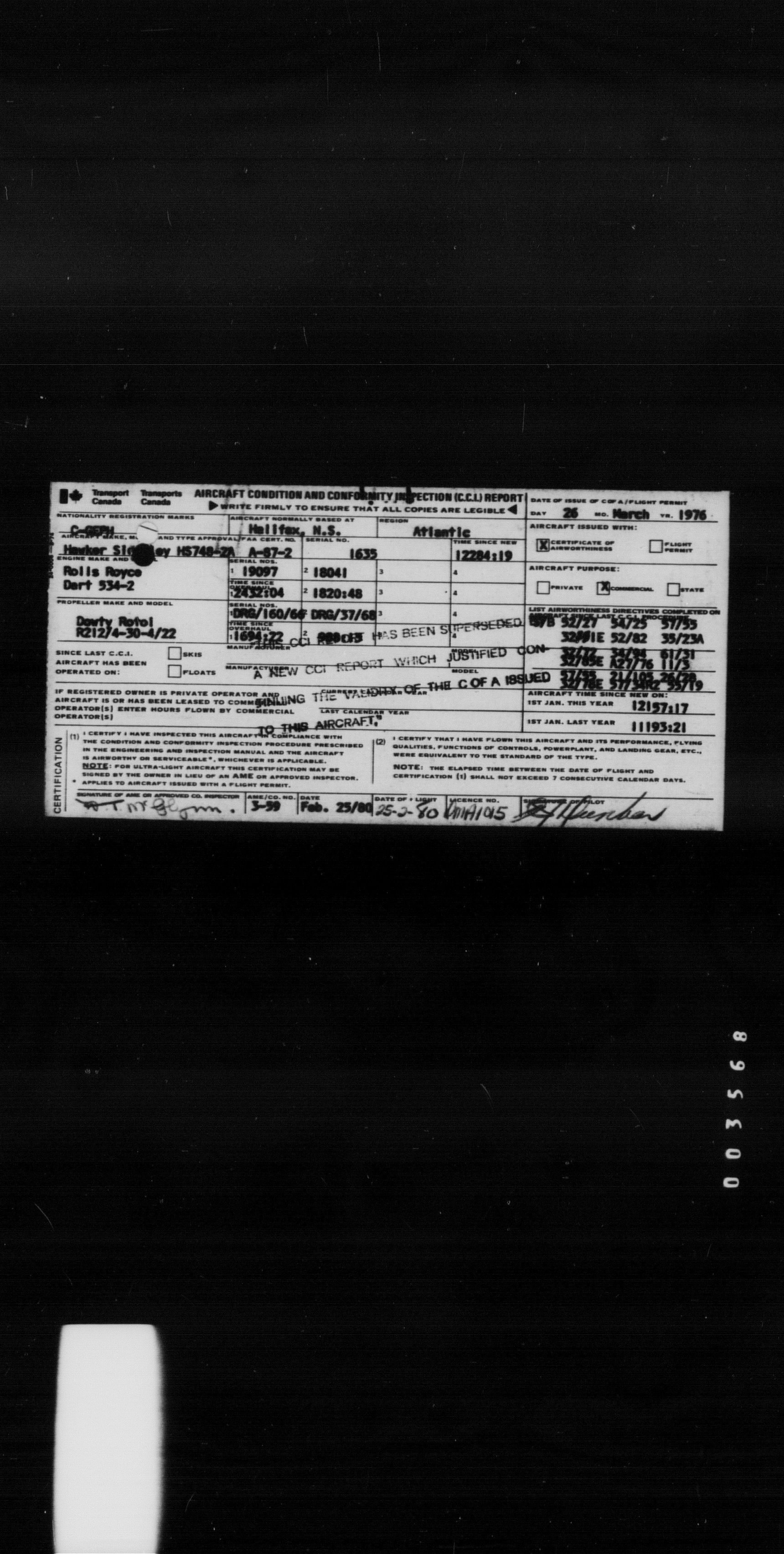 Department of Transport : Civil aircraft registration, inspection and operation files, block 5008, 1920-1986 - 8450