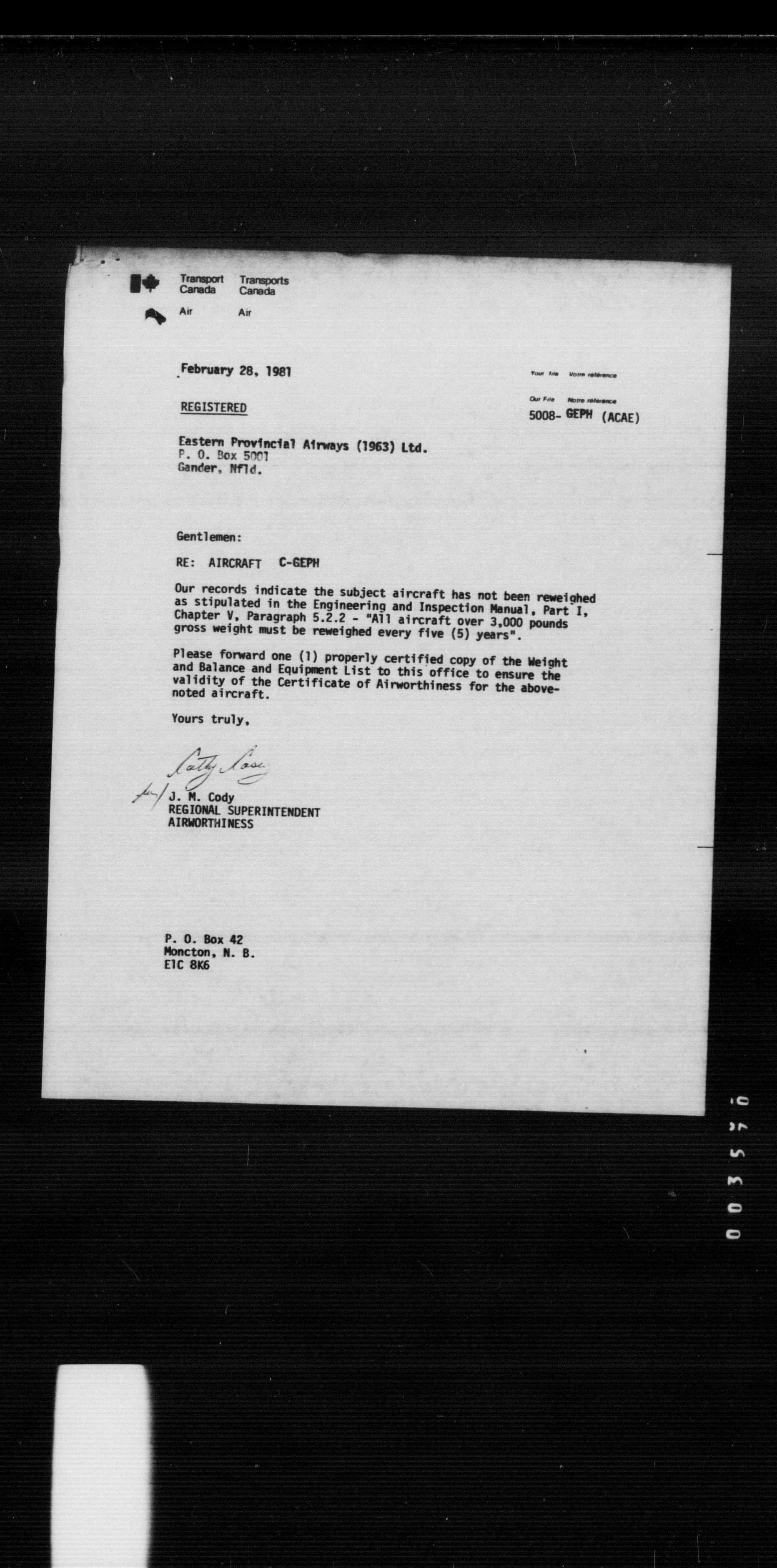 Department of Transport : Civil aircraft registration, inspection and operation files, block 5008, 1920-1986 - 8450