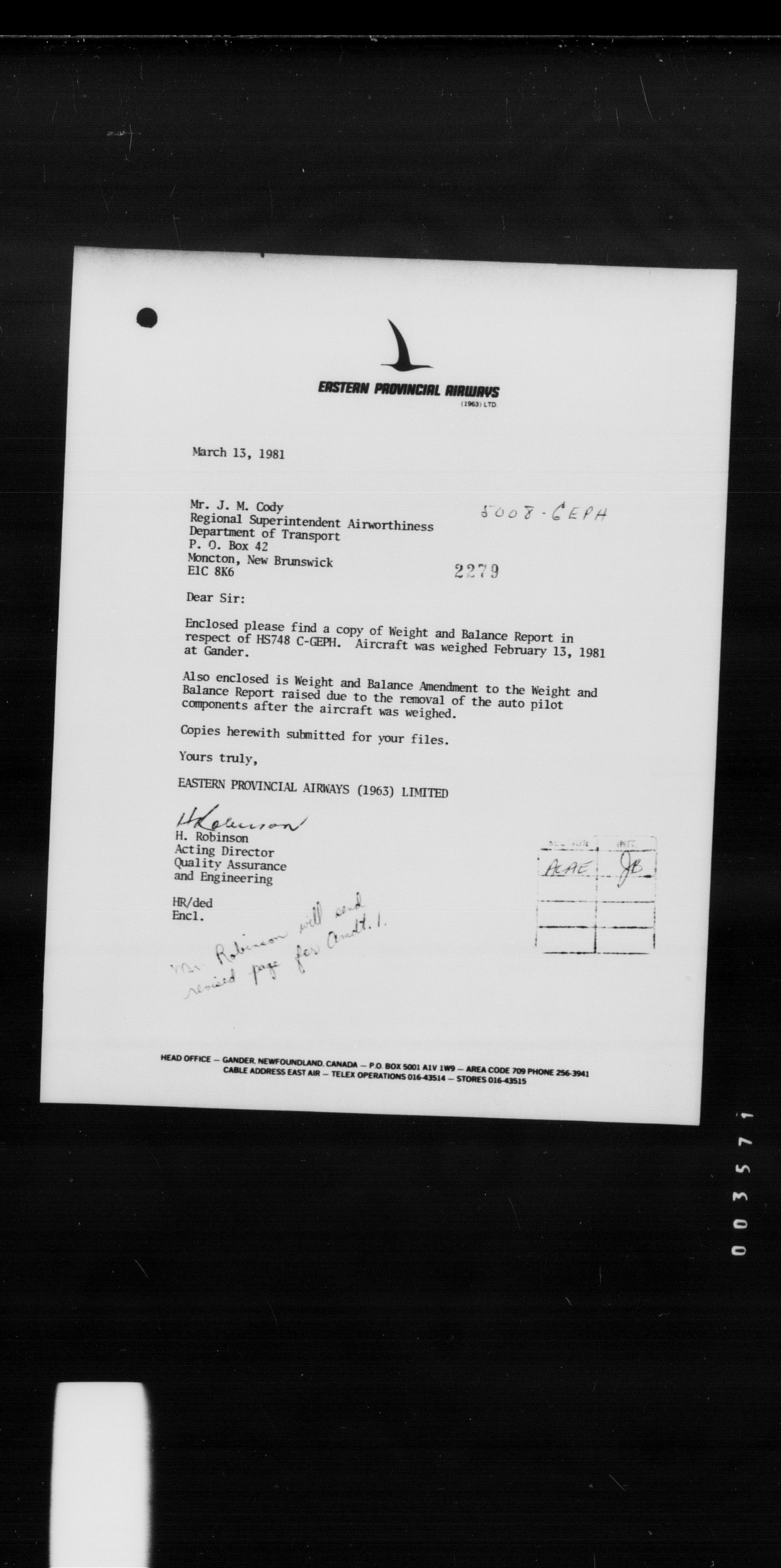 Department of Transport : Civil aircraft registration, inspection and operation files, block 5008, 1920-1986 - 8450