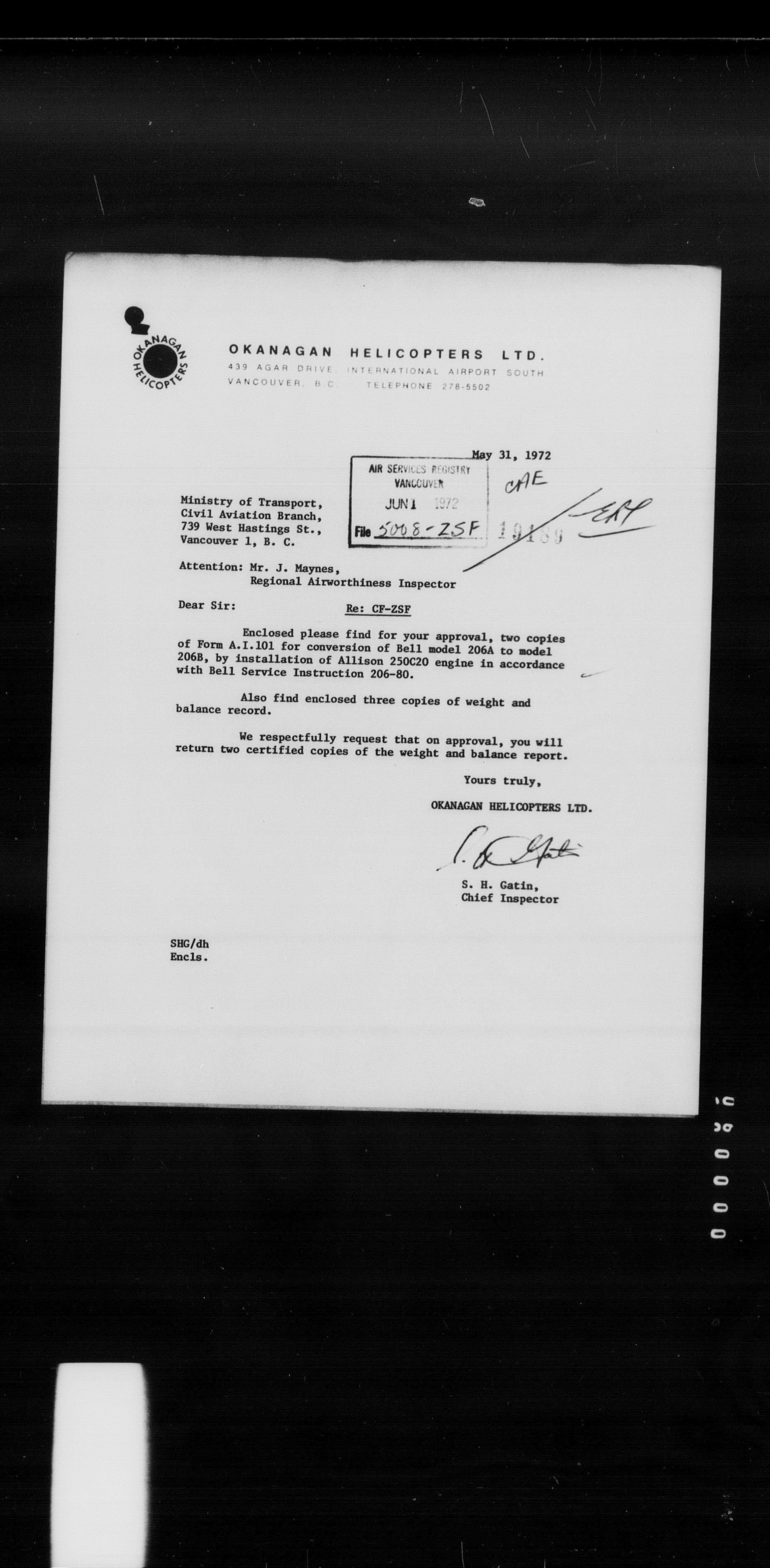 Department of Transport : Civil aircraft registration, inspection and operation files, block 5008, 1920-1986 - 8450