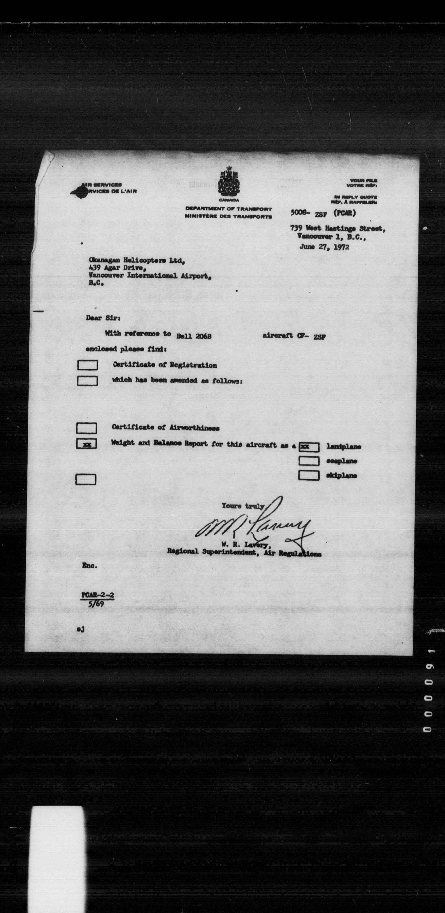 Department of Transport : Civil aircraft registration, inspection and operation files, block 5008, 1920-1986 - 8450