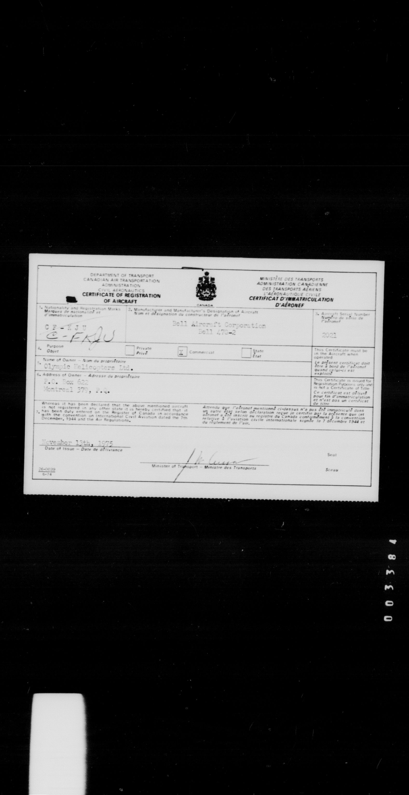 Department of Transport : Civil aircraft registration, inspection and operation files, block 5008, 1920-1986 - 8453
