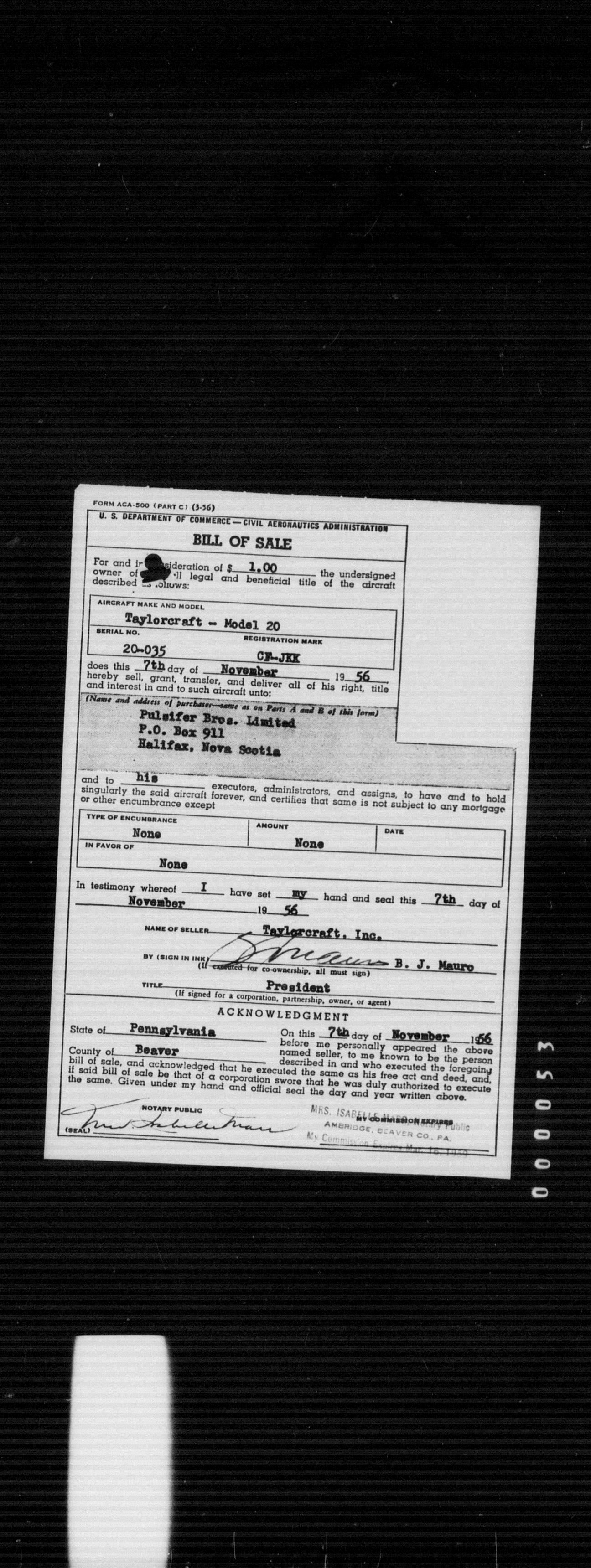 Department of Transport : Civil aircraft registration, inspection and operation files, 1920-1986 : T-8461