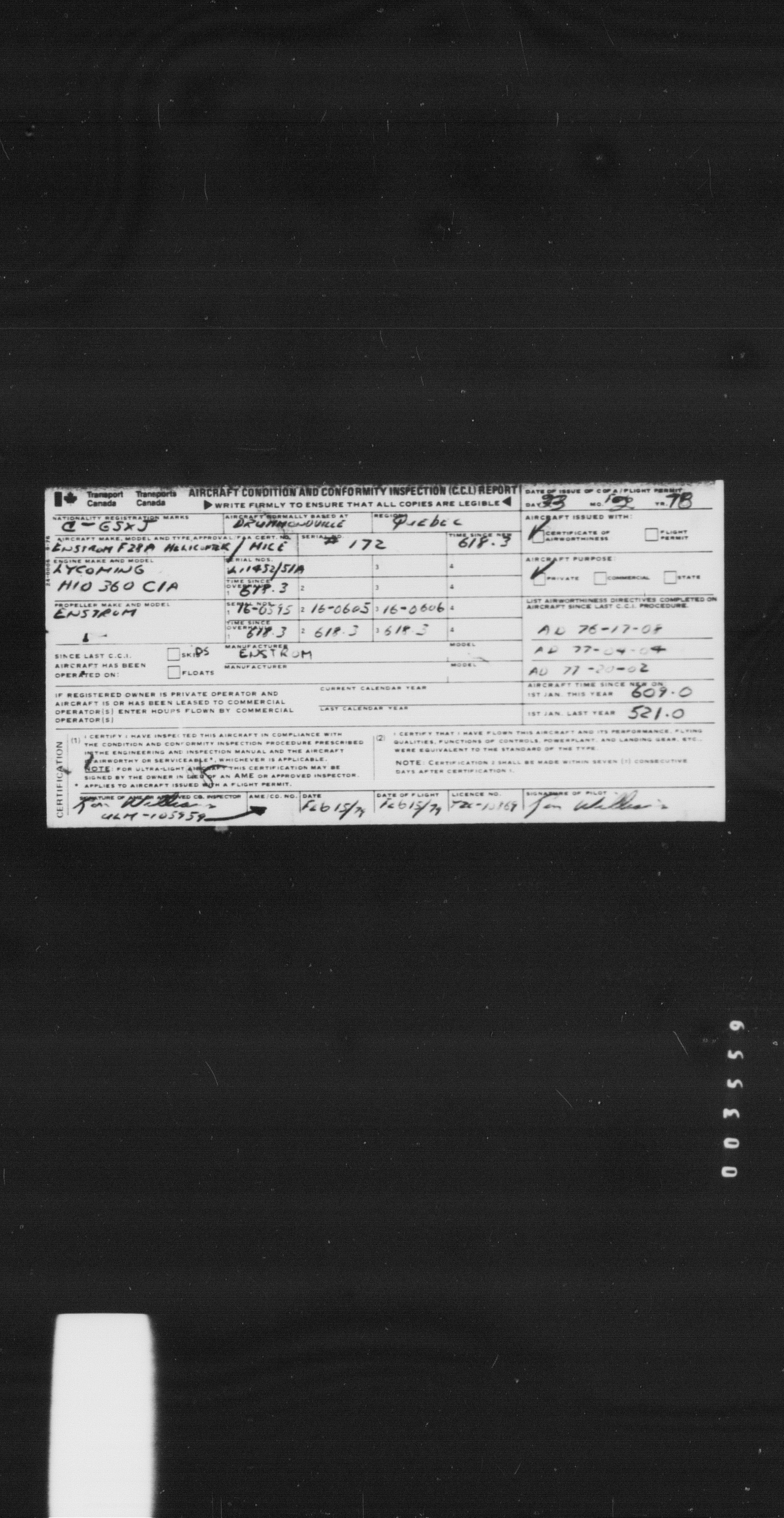 Department of Transport : Civil aircraft registration, inspection and operation files, block 5008, 1920-1986 - 8462