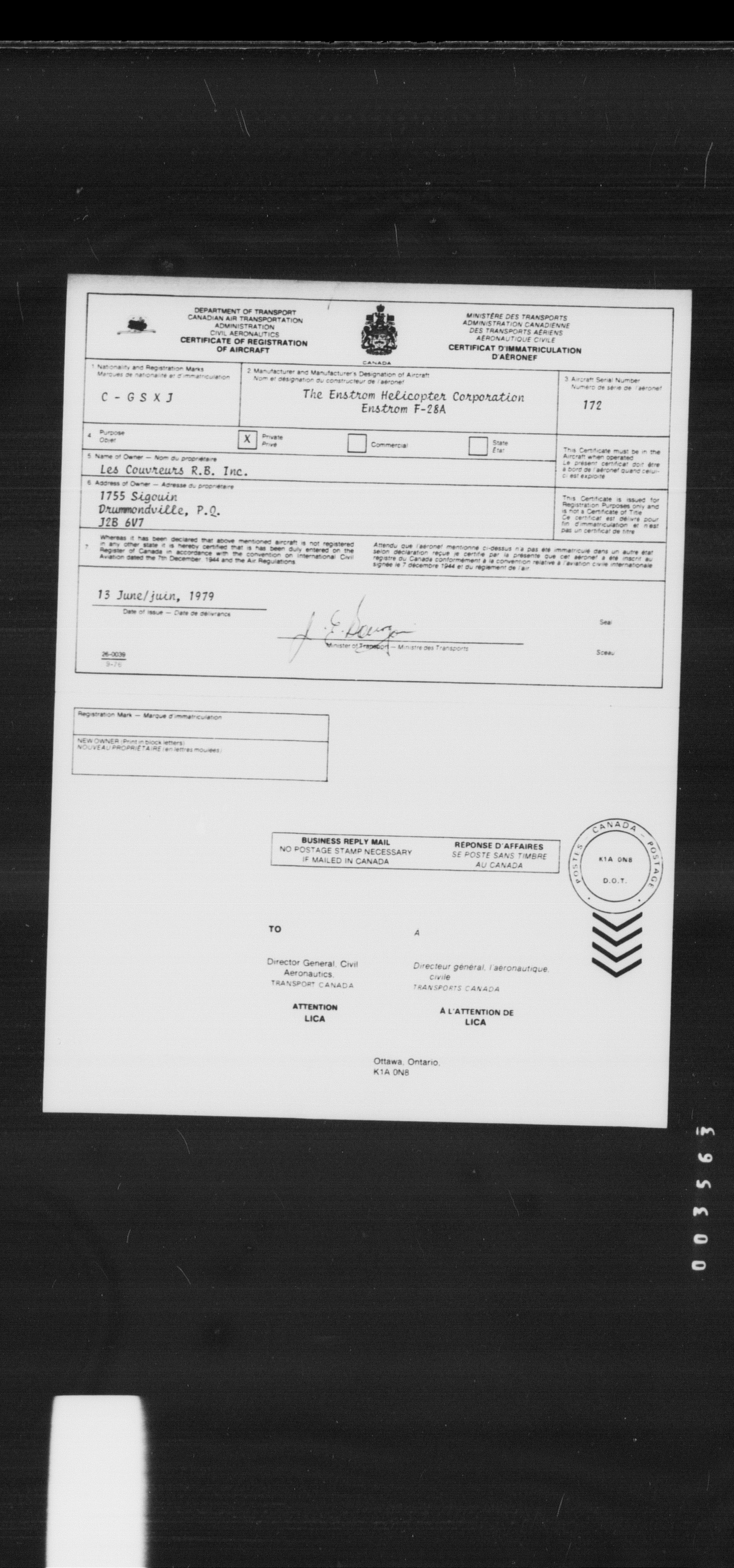 Department of Transport : Civil aircraft registration, inspection and operation files, block 5008, 1920-1986 - 8462